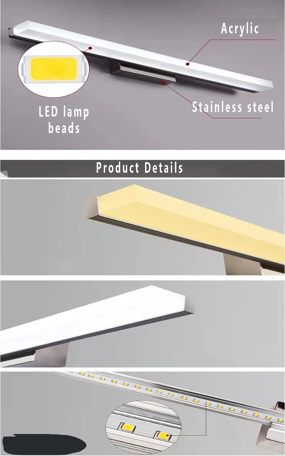 Светодиодный зеркальный светильник из нержавеющей стали AC85-265V, ...