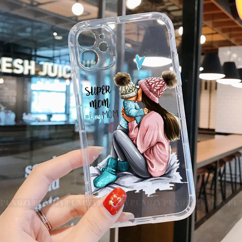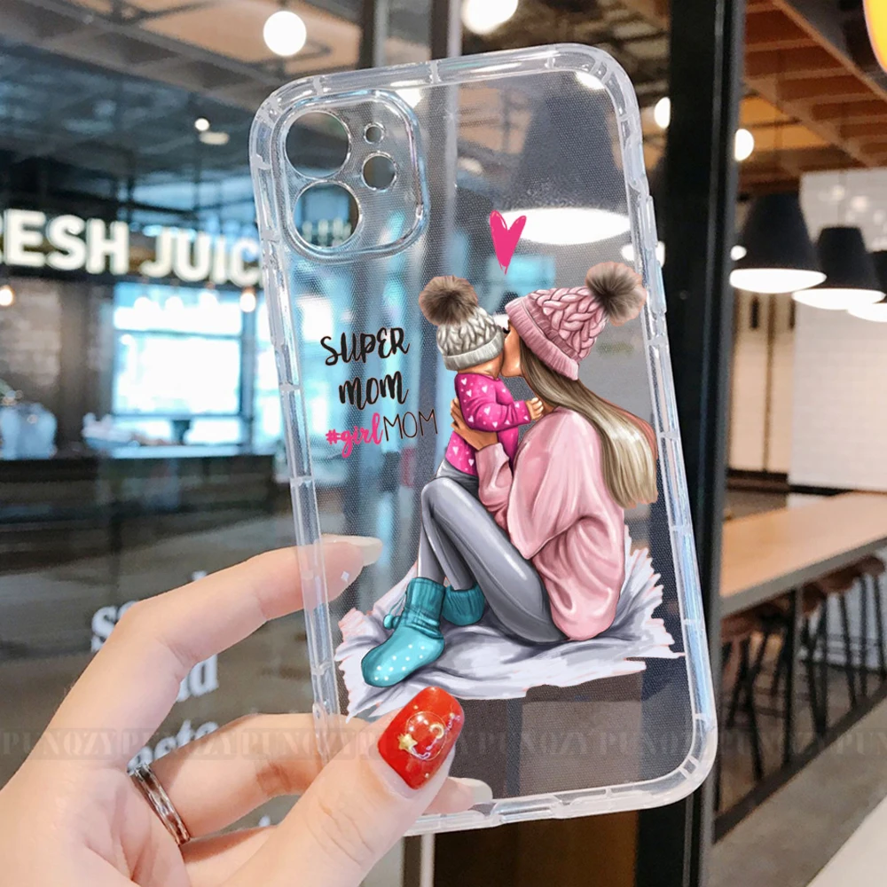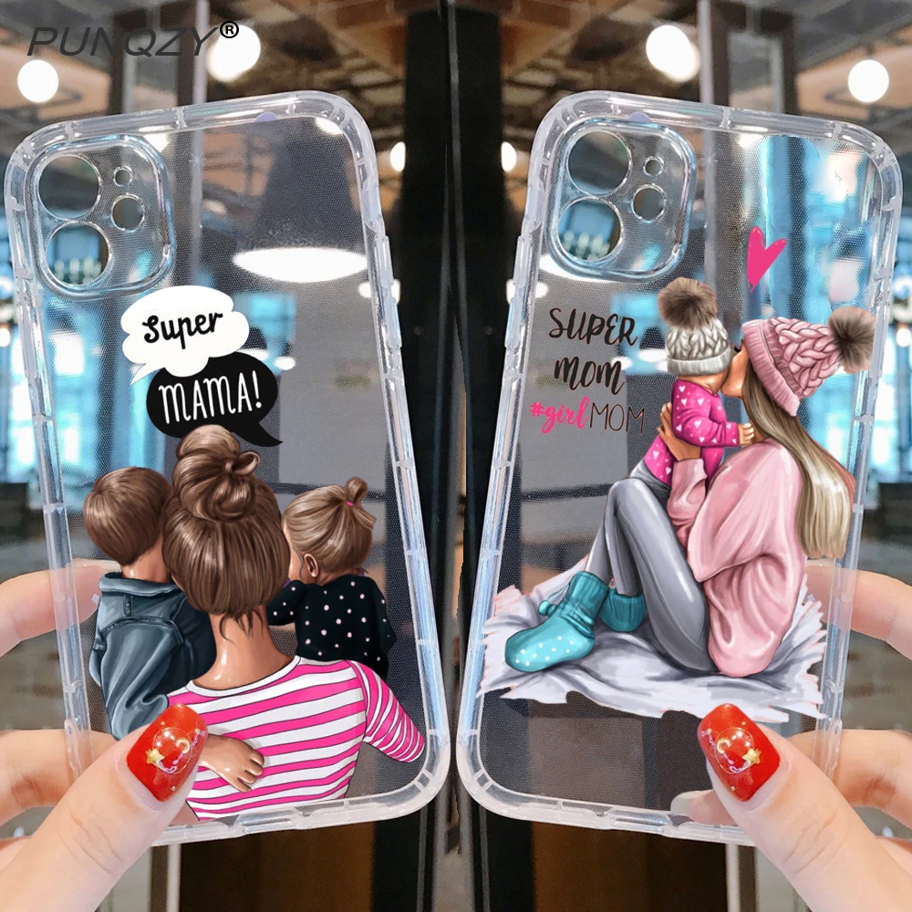 PUNQZY симпатичный чехол для телефона мама девочка мальчик мама ребенок симпатичный чехол для iPhone 13 12 11 PRO MAX XR 6 8 7 XS мягкий термополиуретан праздничный подарок задняя крышка