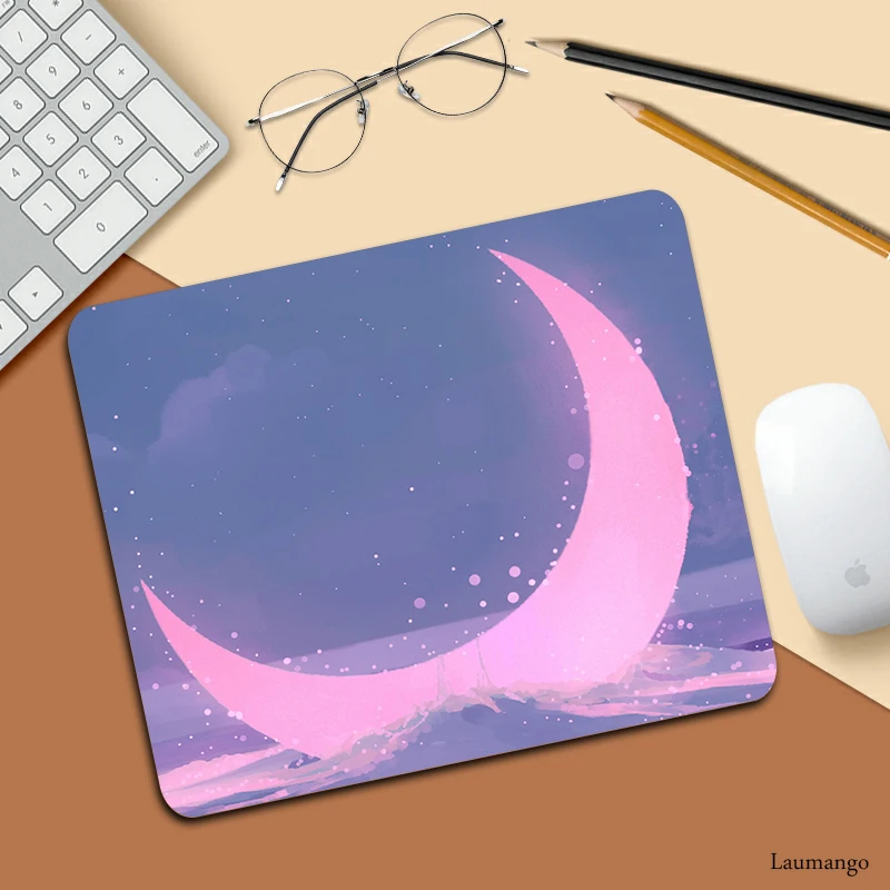 Коврик Для Мыши для ПК, игровой милый маленький коврик для мыши в стиле аниме с изображением розовой Луны, рандомная Настройка, Противоскользящий коврик, Настольный коврик, настольные коврики, игровые коврики