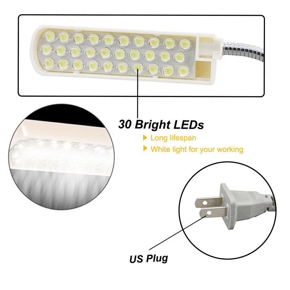 Промышленный светильник, светильник для швейной машины, 30 светодиодов, многофункциональная гибкая рабочая лампа, магнитный светильник для шитья для сверлильного станка