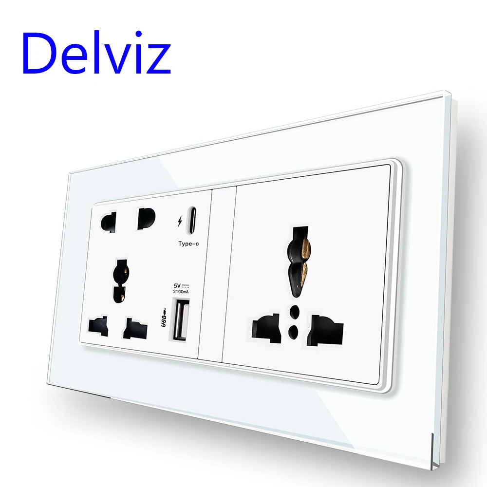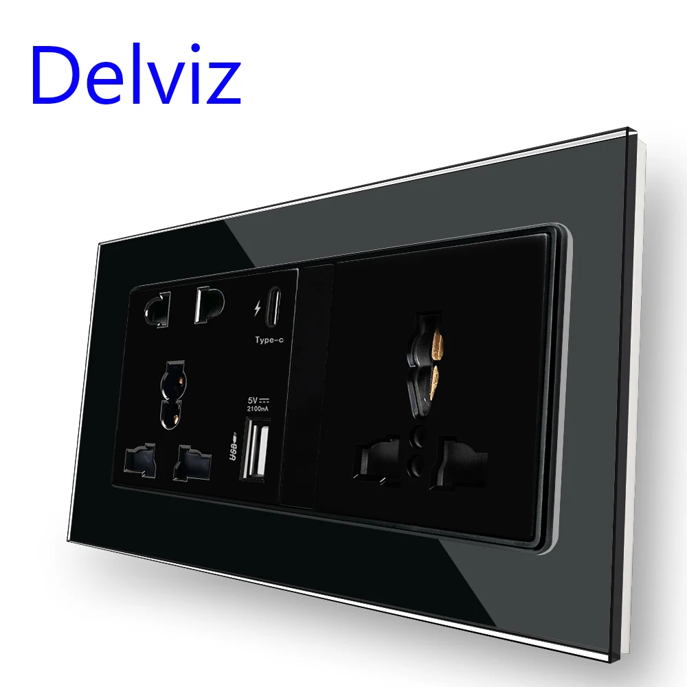 Интерфейсная розетка Delviz Тип C, умная Быстрая зарядка 18 Вт 4 а, настенная универсальная двойная розетка 16 А, прозрачная стеклянная панель, розетка USB