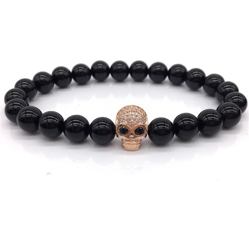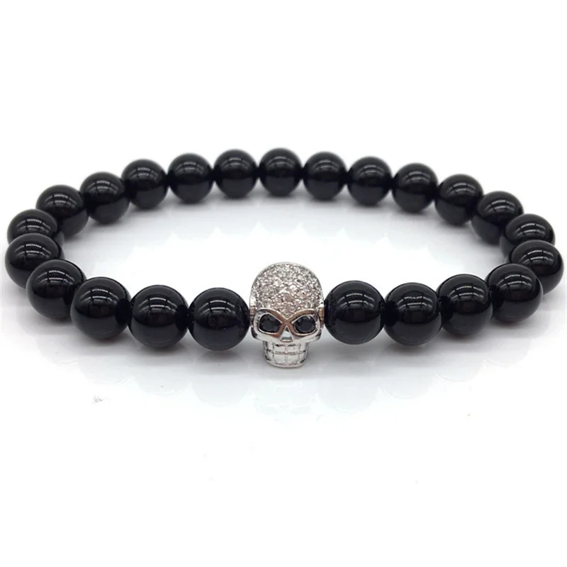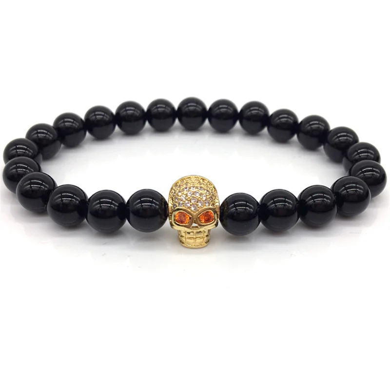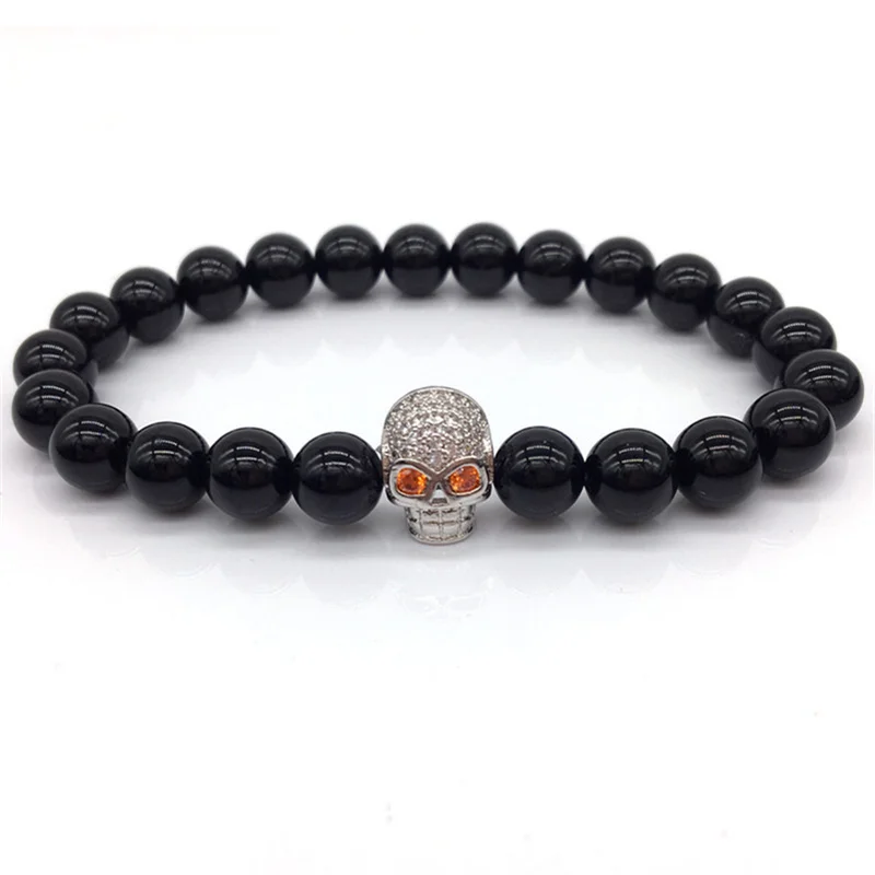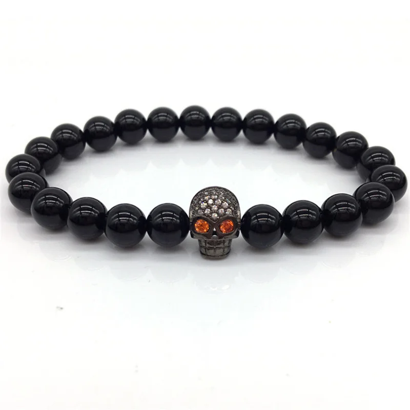 Новинка 2022, мужской классический браслет в стиле панк с черепом, браслет ручной работы с кубическим цирконием, камнями и бусинами для Мужчин, Ювелирные изделия в подарок