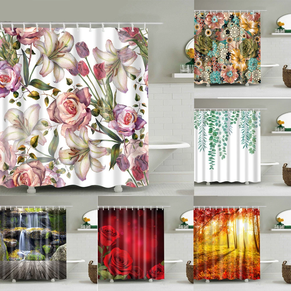 Полиэстеровые шторы для душа с цветочным принтом, водонепроницаемые...