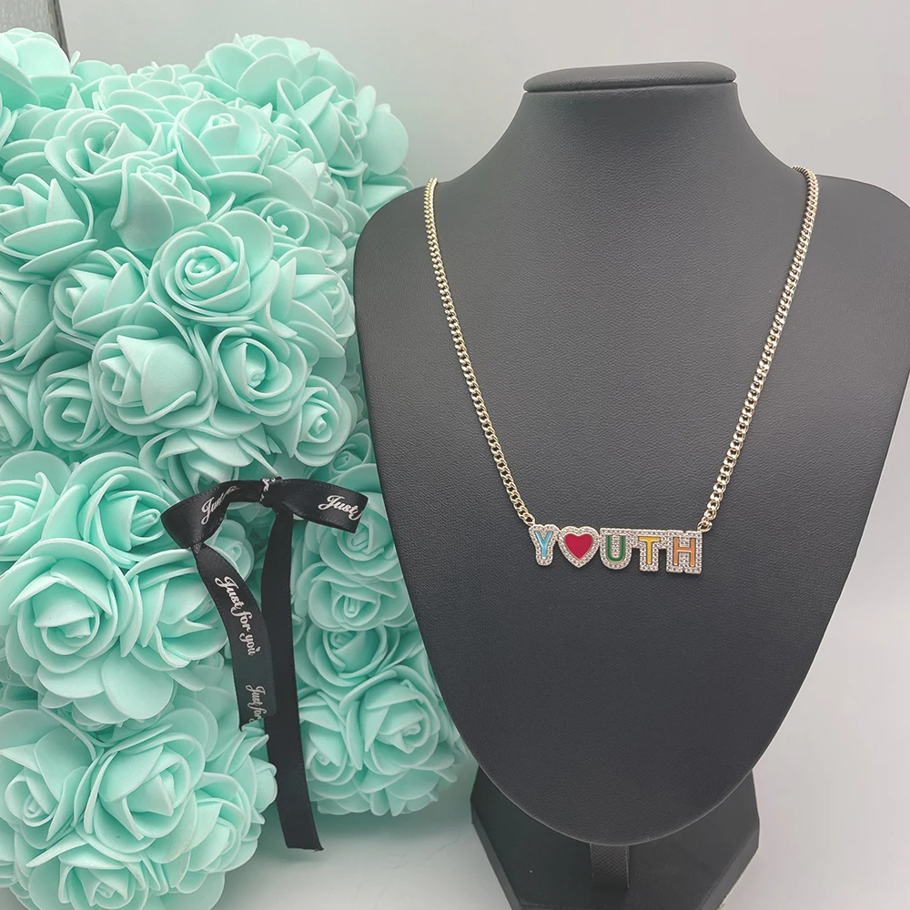 LUER ожерелье с именем на заказиндивидуальная эмалированная табличка с надписью Стразы DIY кулон для женщин девушек ювелирные изделия подарок