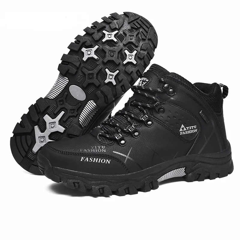 Мужские кожаные ботинки, Нескользящие, непромокаемые, на платформе, плюшевая подкладка, рабочая обувь, черные, для улицы, походов