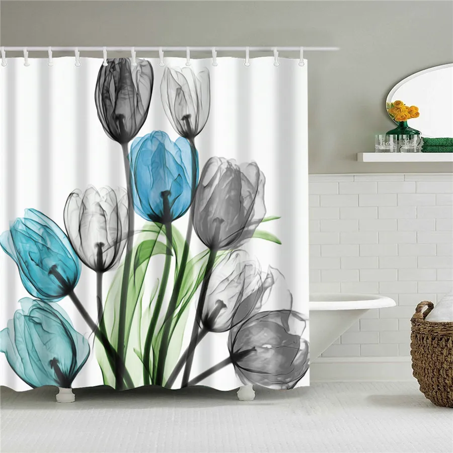 Полиэстеровые шторы для душа с цветочным принтом, водонепроницаемые...