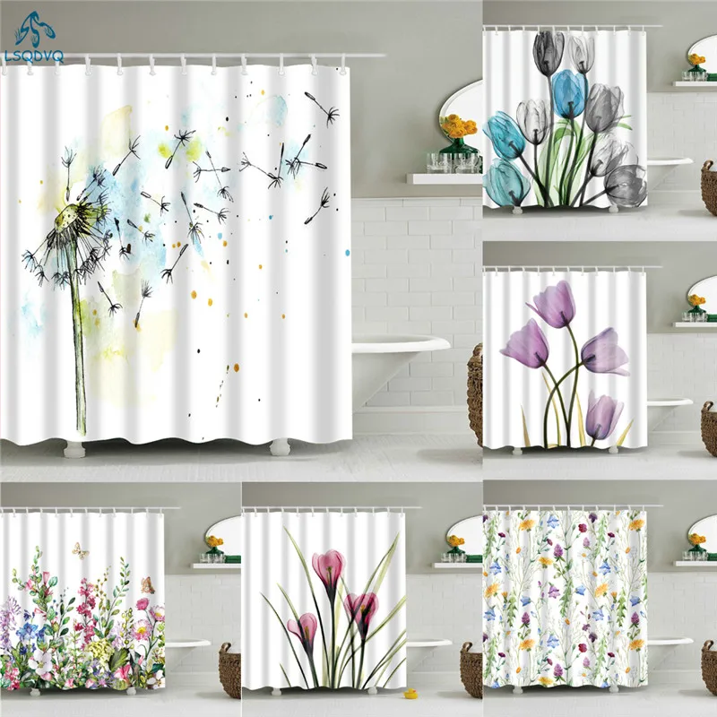 Душевая занавеска для душа с изображением одуванчика и цветов, занавеска для ванной из водонепроницаемой ткани с крючком
