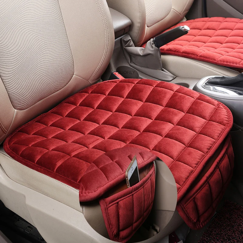 Чехол для автомобильного сиденья с противоскользящим покрытием на обратной стороне, универсальный для сохранения тепла зимой, кофейныйчерныйфиолетовыйкрасныйбежевый