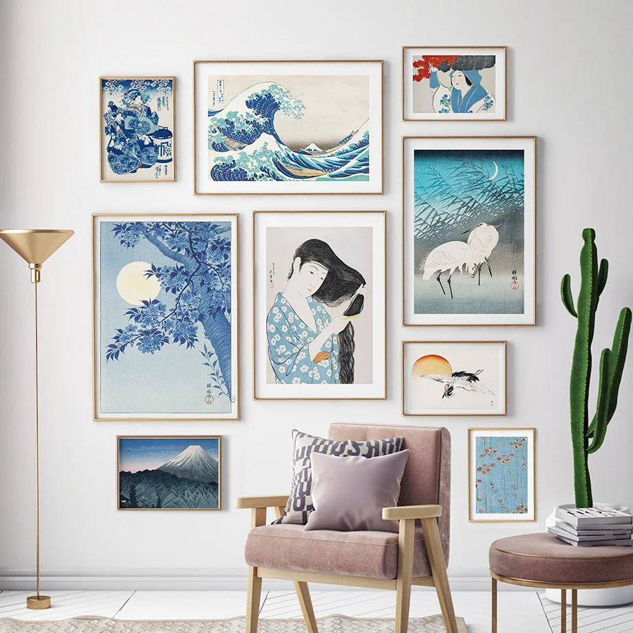 Абстрактный синий цветок птица листья Винтаж настенное Искусство Хо...