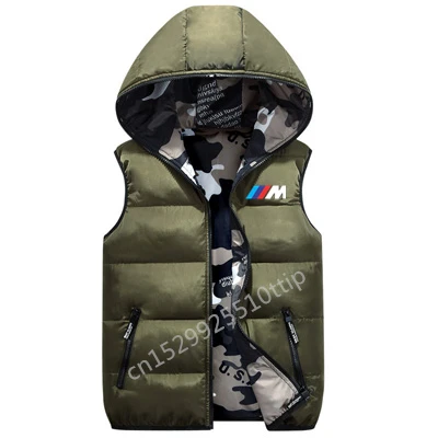Мужская куртка для bmw, жилет без рукавов, зимняя мужская двойная одежда, жилет с хлопковой подкладкой и капюшоном, пальто, мужские толстые теплые безрукавки, одежда c
