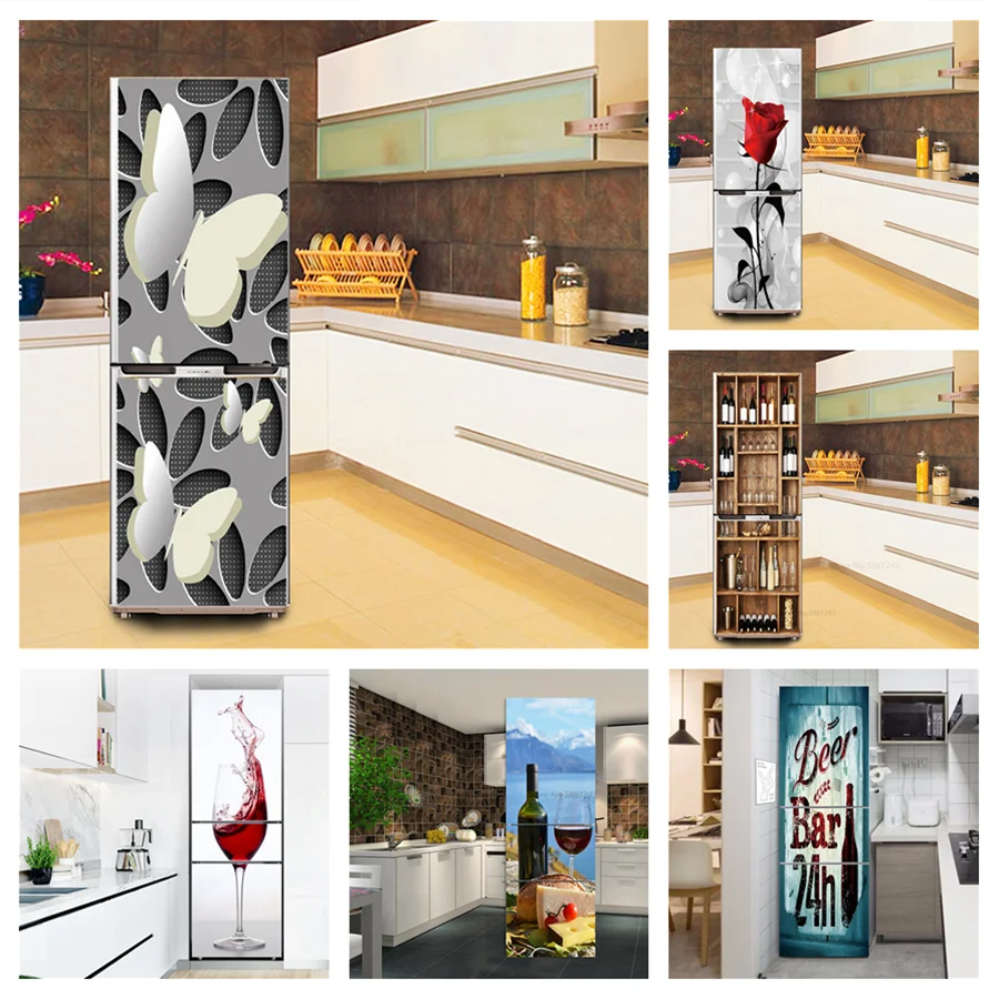 Забавные бабочки, наклейки на холодильник, крышка холодильника, полная дверь, Настенная Наклейка на холодильник, пиво, вино, обои, наклейка, домашний декор