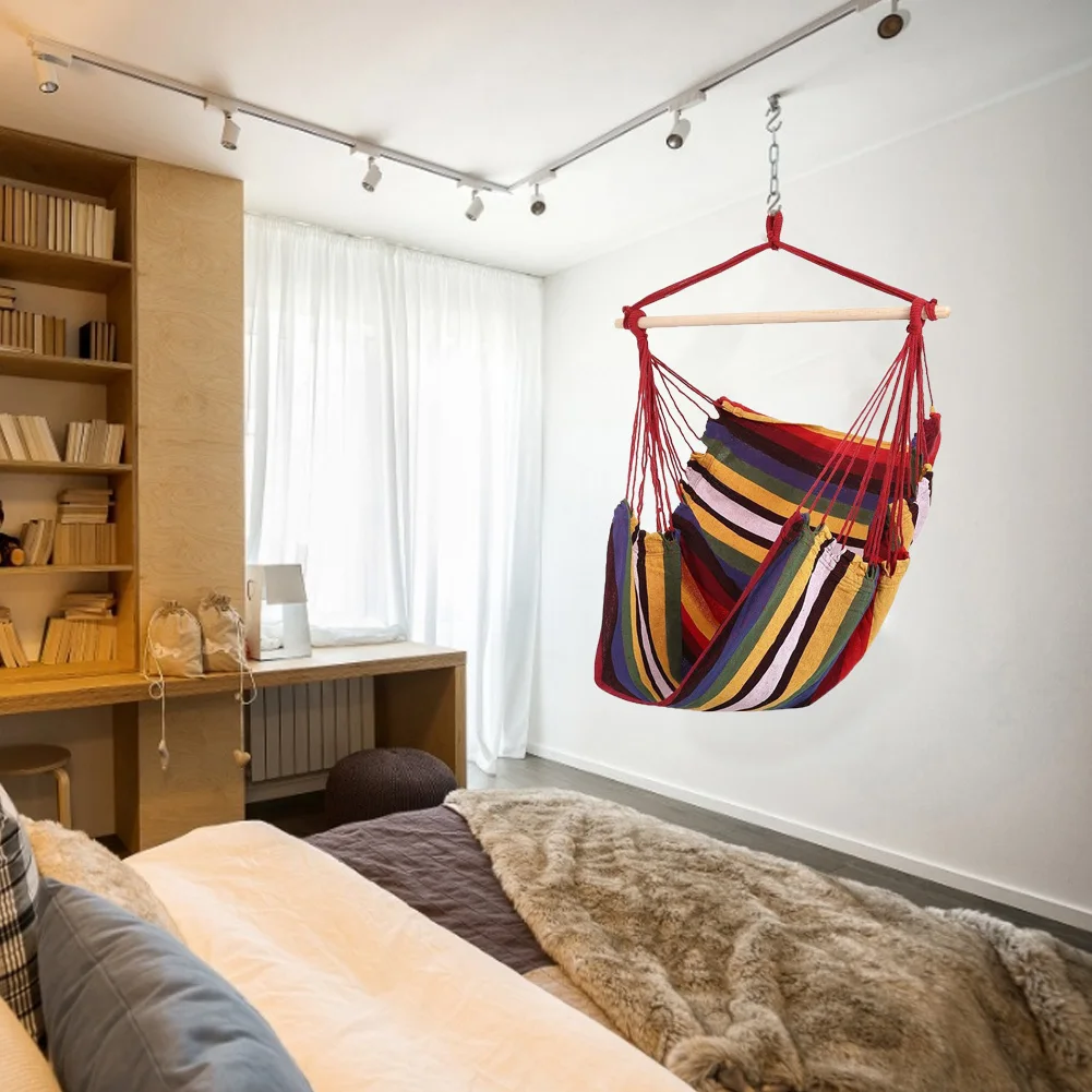 Портативный холщовый гамак, комнатное кресло, качели в полоску, под...