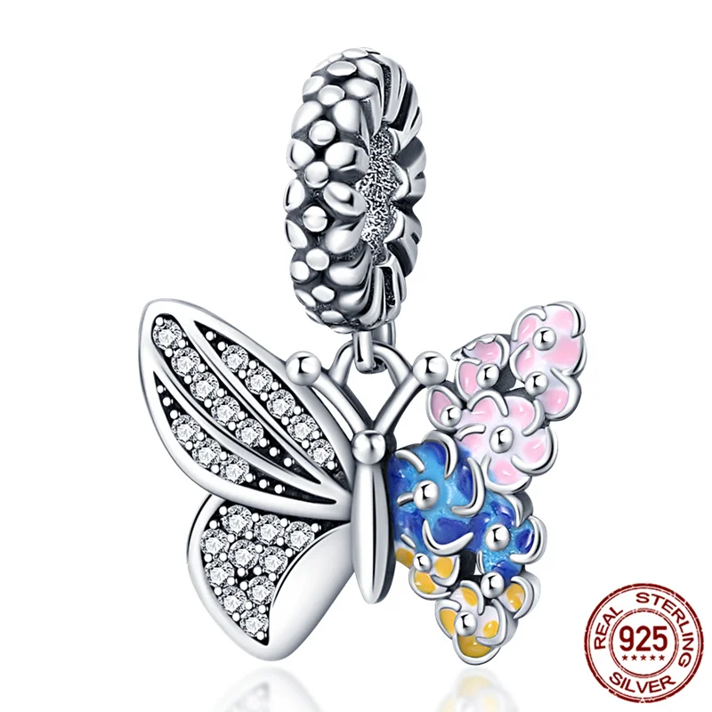 Горячая Распродажа, серебро 925 пробы, цветок, Бабочка, фотоэлемент, подходит для оригинальных браслетов Pandora, подвеска сделай сам, ювелирные изделия, хороший подарок для женщины