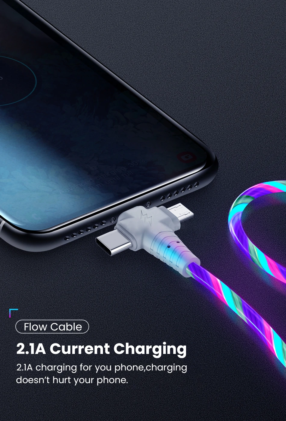 3в1 Micro USB Type C кабель для iPhone 13 12 11 Huawei Samsung flow светящийся светодиодный usb кабель для быстрой зарядки USB C шнур