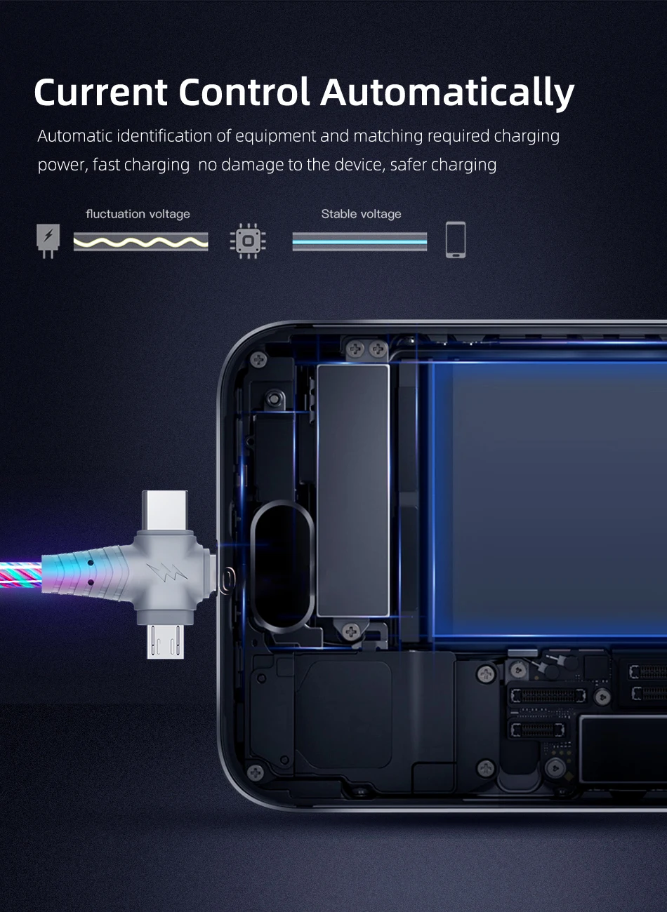 Кабель зарядный 3-в-1 со светодиодной подсветкой, микро-USB, 3 в 1