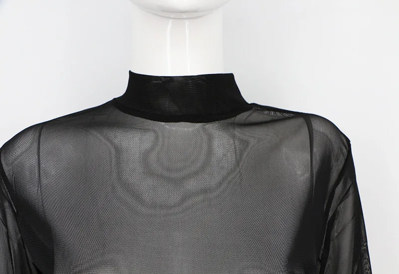 Женская Сексуальная футболка, прозрачные сетчатые топы, Прозрачная облегающая женская Водолазка с длинным рукавом, женская одежда