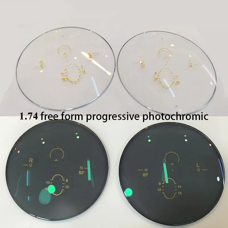1,74 высокий индекс Хамелеон Freeform мультифокальная прогрессивная фотохромная переходная Тонкая линза близорукость дальнозоркость чтение