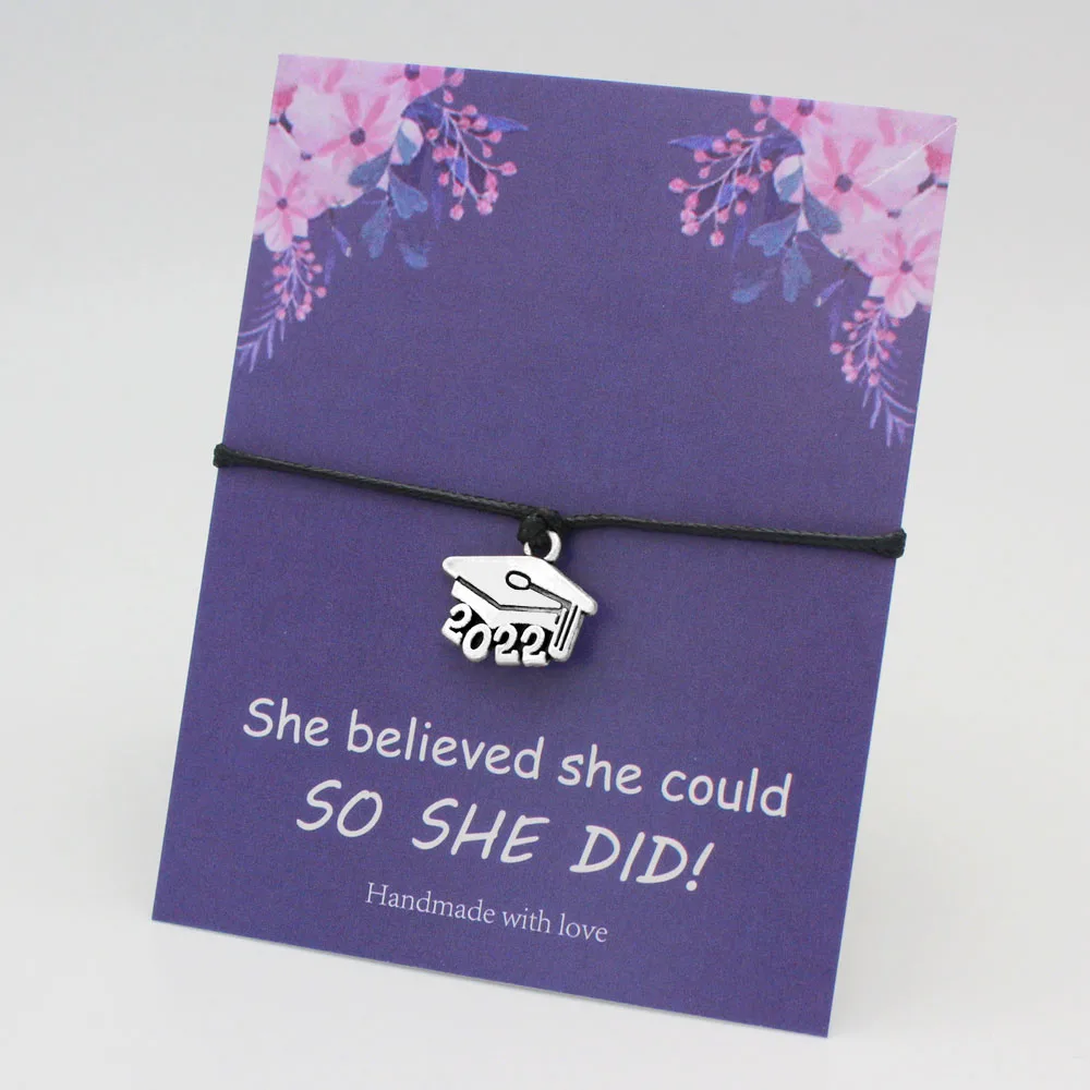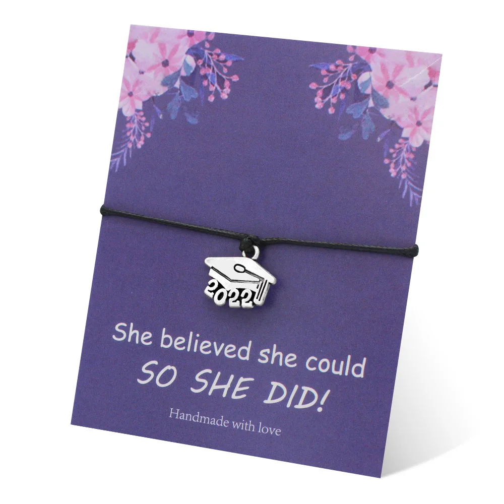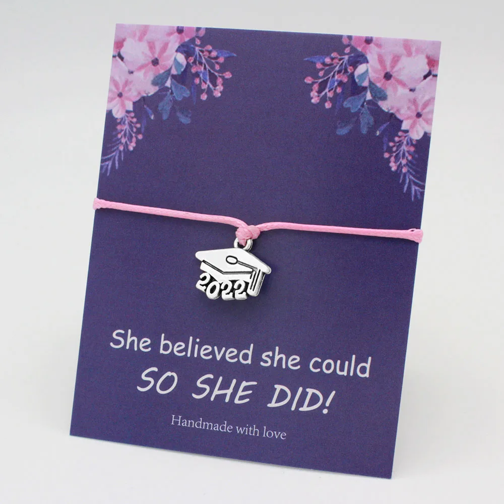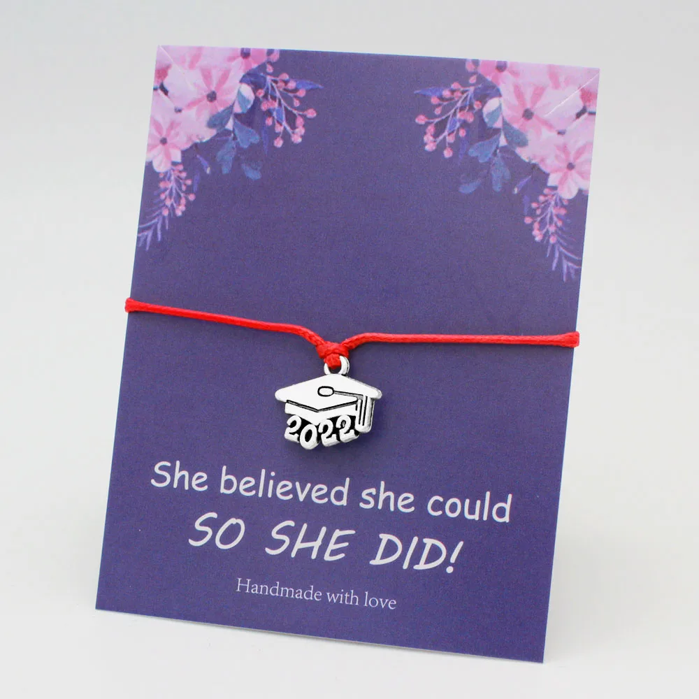 Браслет с шармами для выпускного, 2022, 2023, 2024, квадратная Кепк...