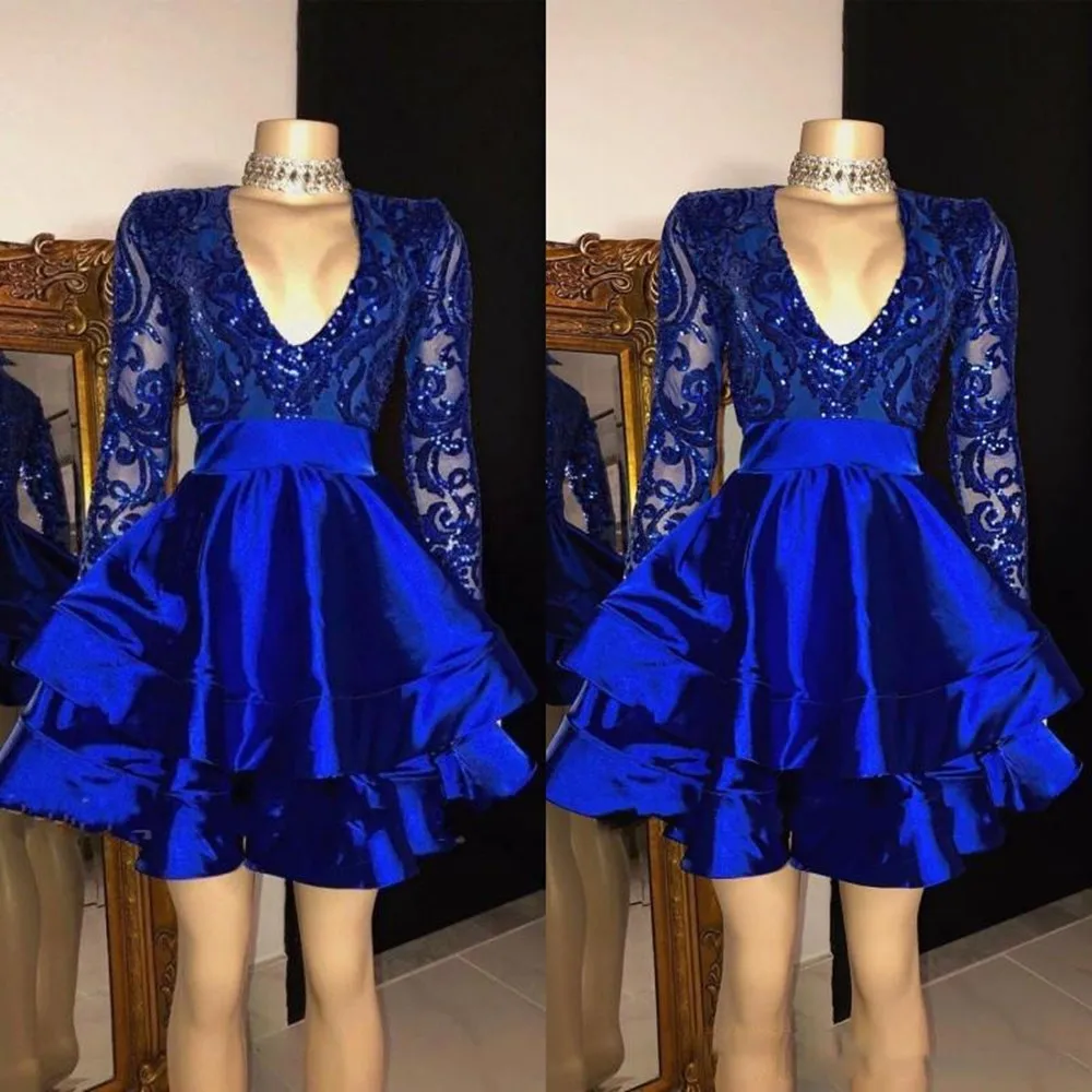 Блестящие яркие короткие платья для выпускного вечера длиной до колена с длинными рукавами и аппликацией из блесток