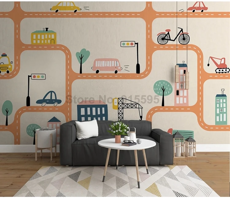 Мультяшные обои для детей, современные 3D Ручная роспись, детская комната, автомобиль, строительство, дорога, узор, обучение, спальня, пользовательские росписи Декор