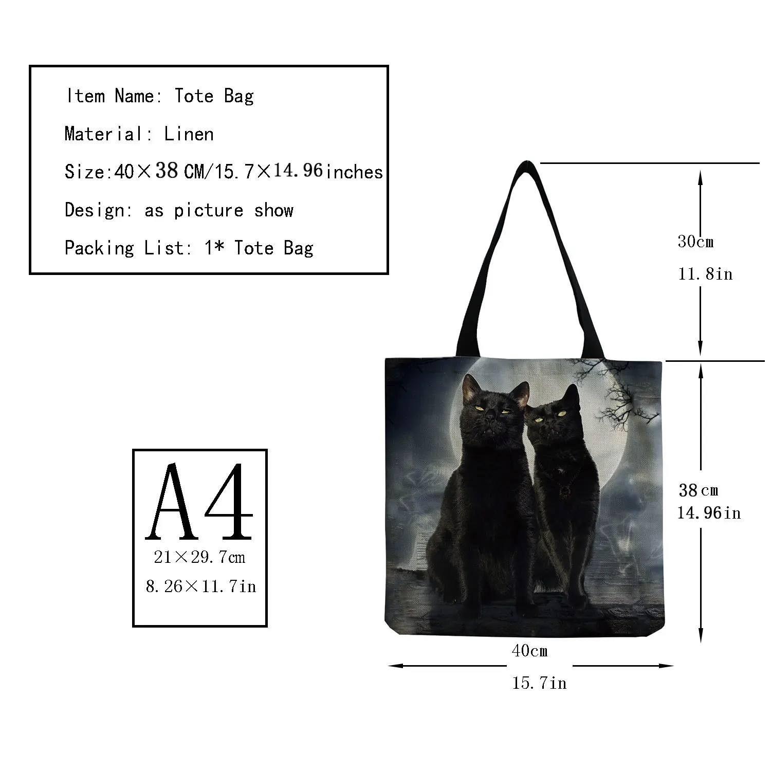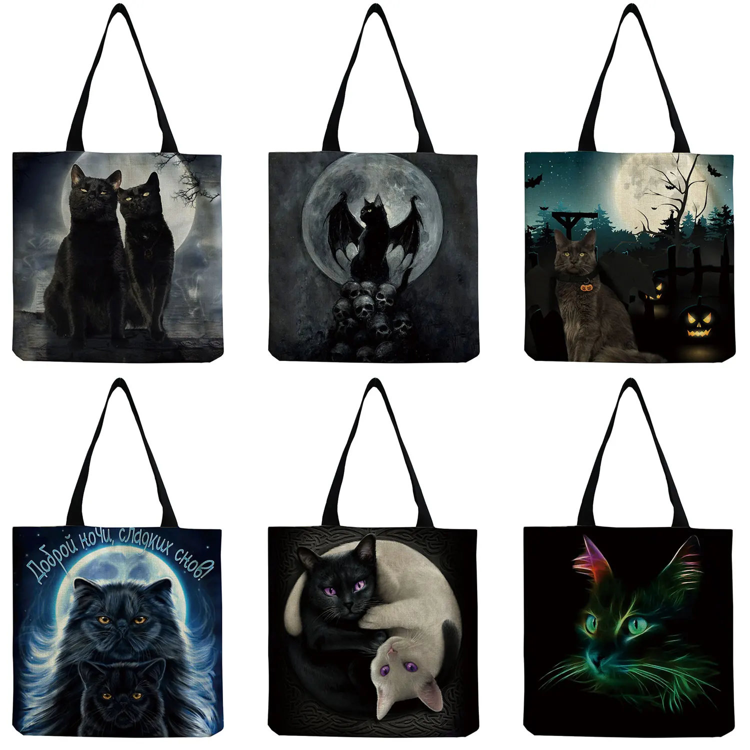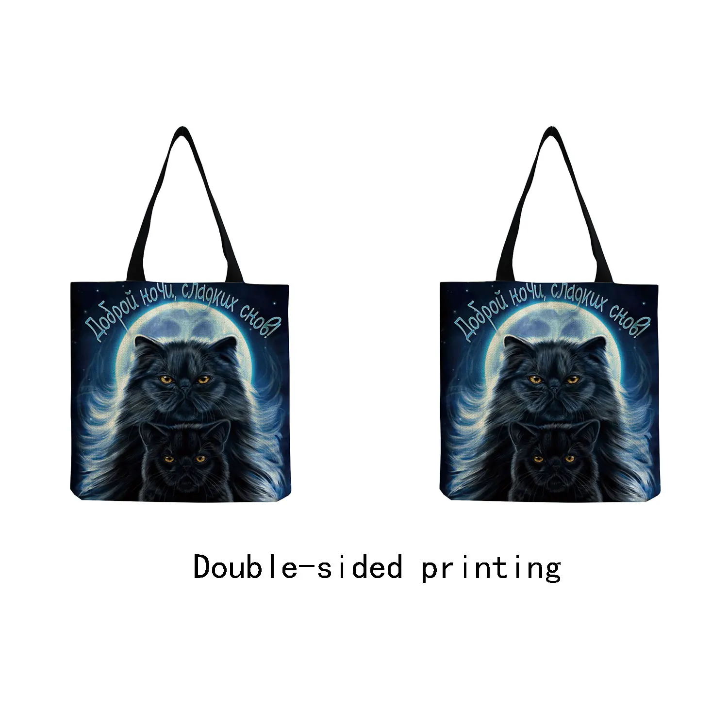 Индивидуальная многоразовая сумка для покупок, Женская Повседневная Сумка-тоут с принтом Луны и кота, вместительные складные сумки на плечо