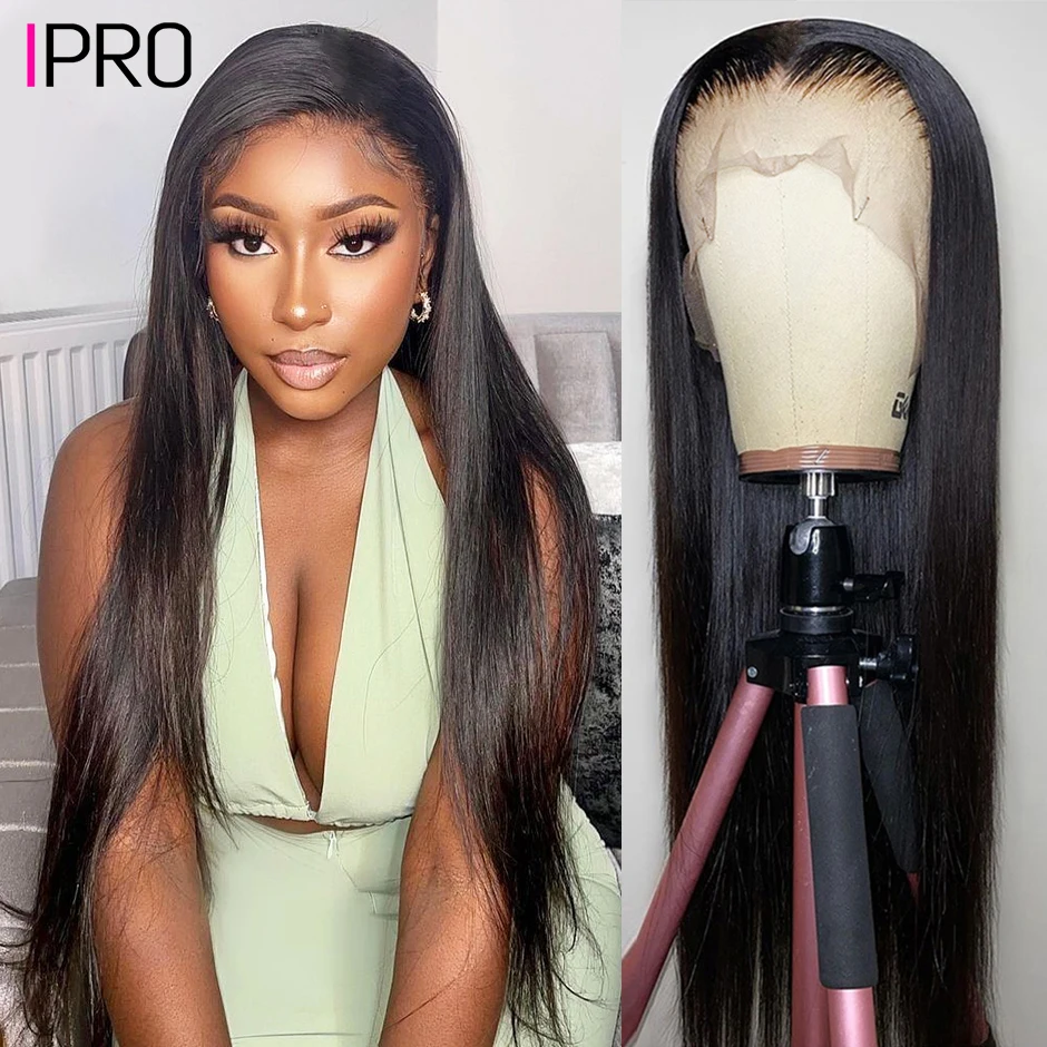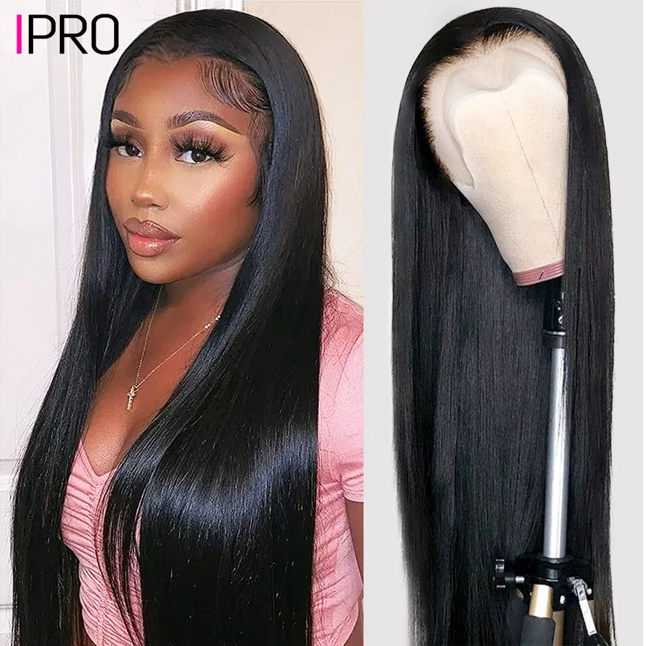 Прямые фронтальные парики на сетке IPRO 13*1, прозрачные парики на сетке для черных женщин, предварительно выщипанные дешевые фронтальные парики на сетке из человеческих волос