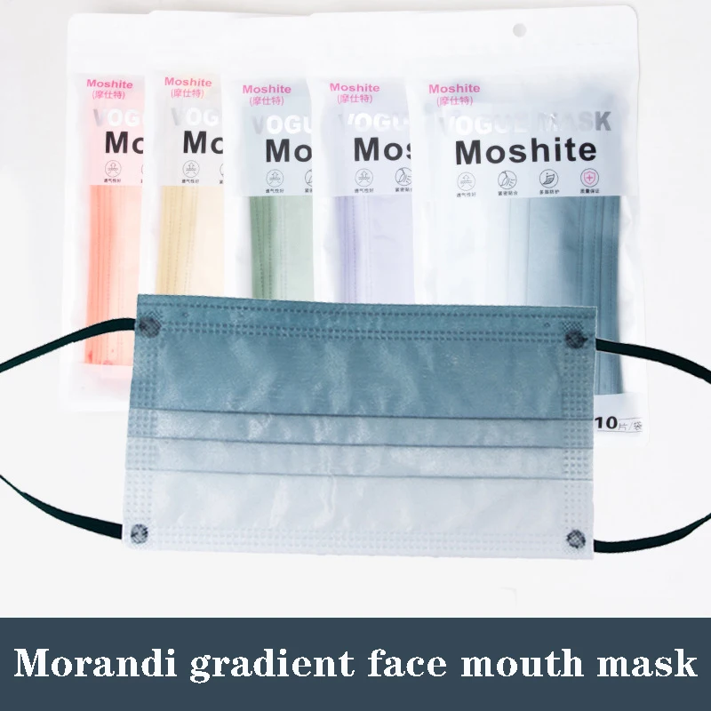 10 шт.пакет Morandi одноразовая маска для лица, градиентные маски для рта для взрослых, 3-слойные маски с расплавленным покрытием, защитные маски от пыли