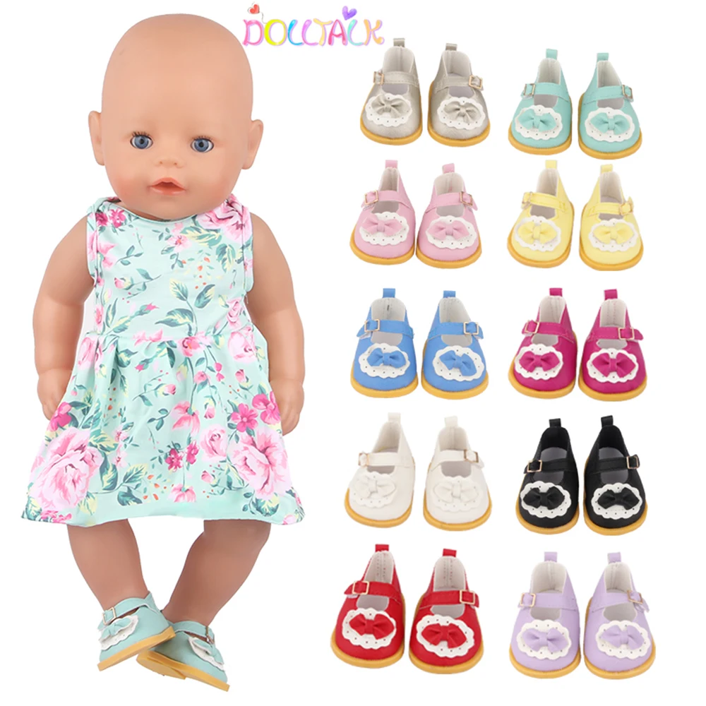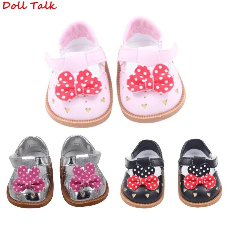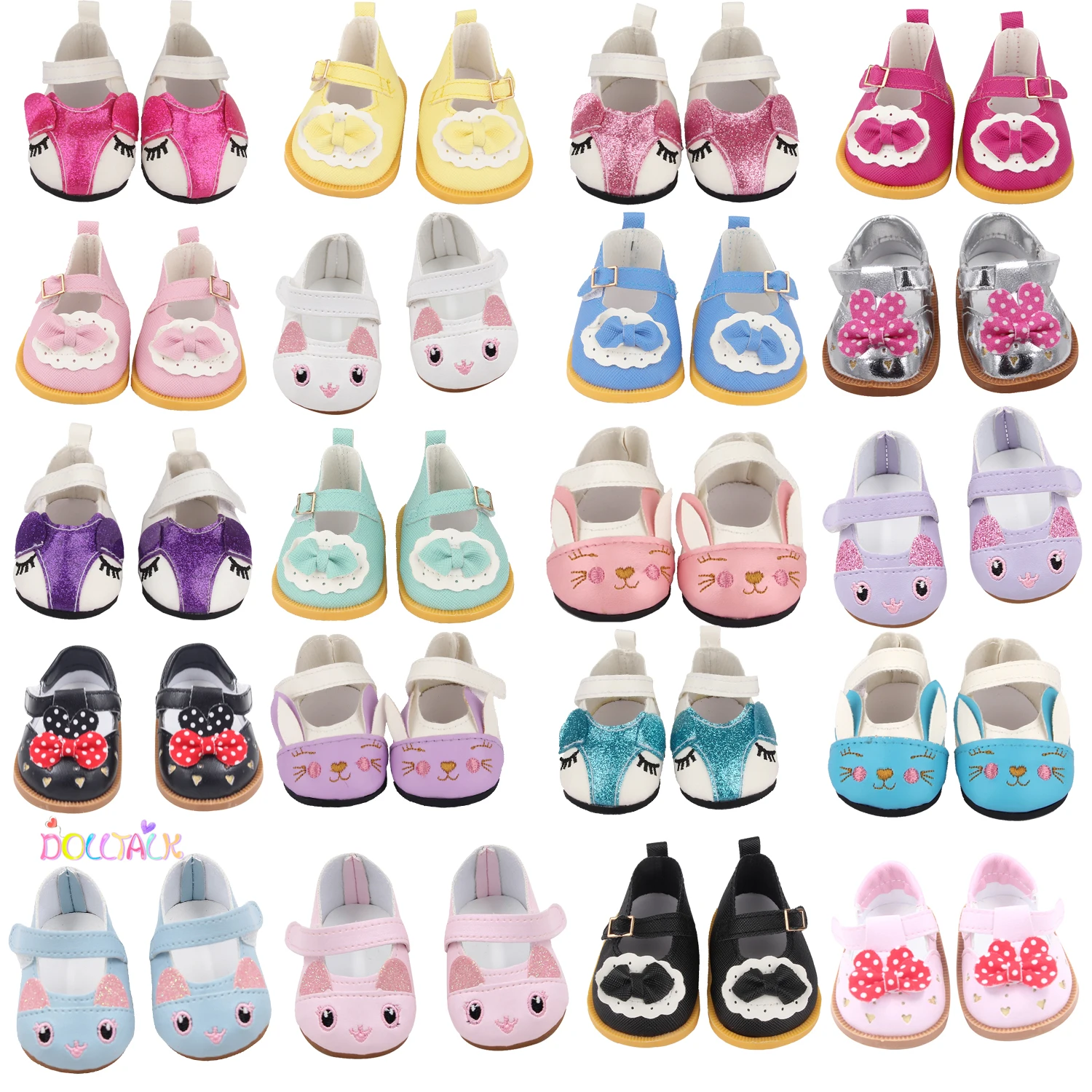 Милый на каблуке 7 см, с бантом, с проектом из мультфильма, обувь для американский 18 дюймов Кукла девочка одежда аксессуары для мини токарный станок обувь 43 см для ухода за ребенком для мам, новинка, комплект одежды для новорожденных, и кукла OG игрушка в подарок