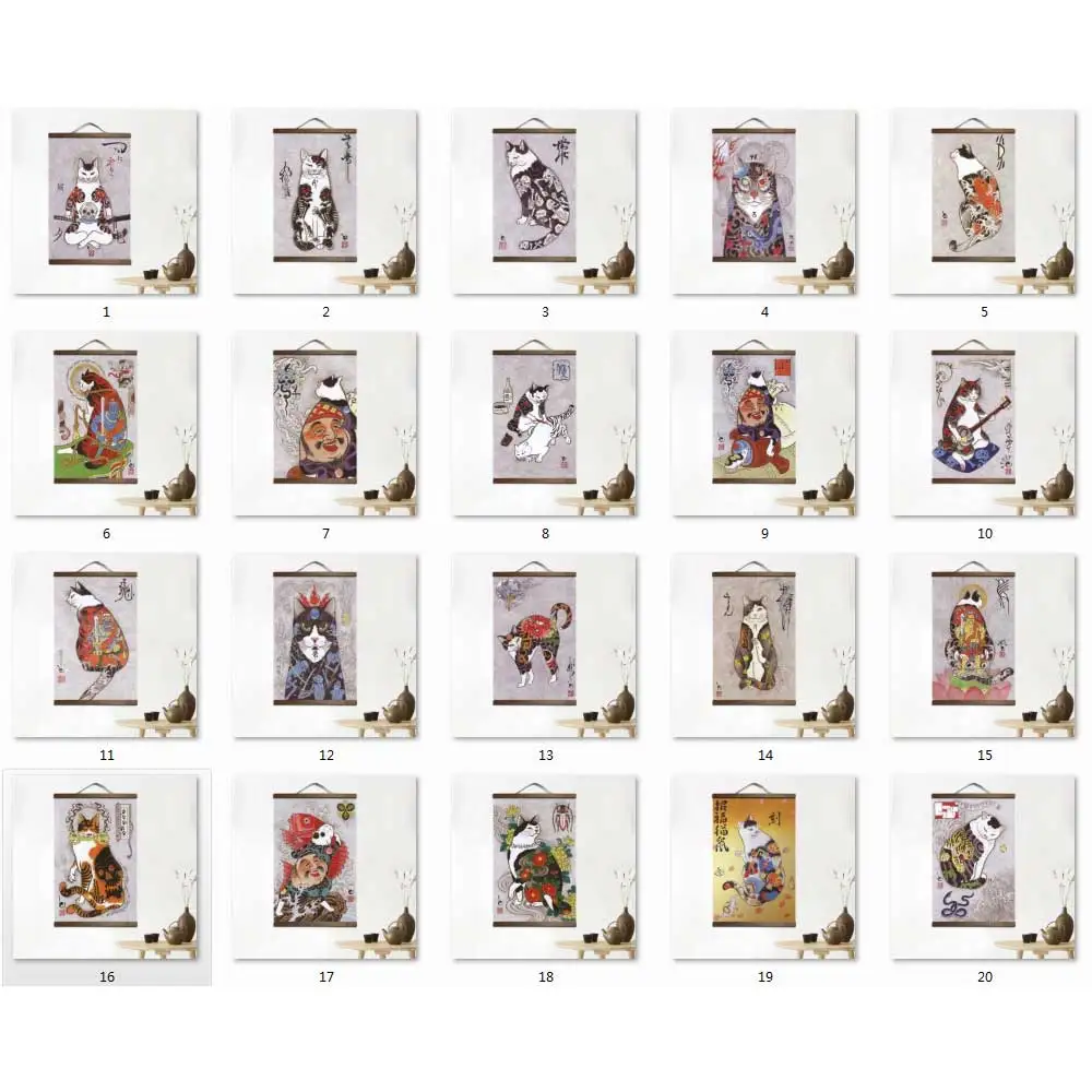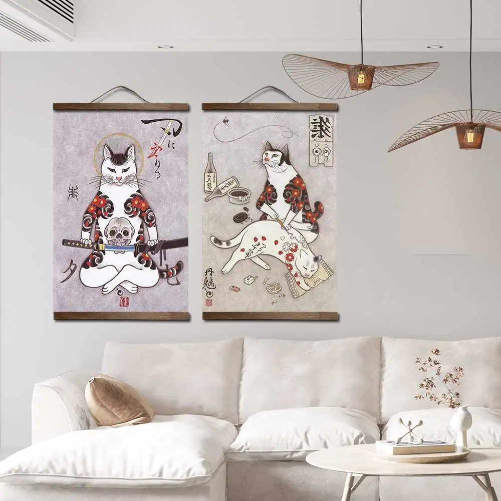 Холст в японском стиле с Самураем, кошкой, украшение для дома, Настенная картина для гостиной, аниме постер, картина из лицевой древесины, Декор