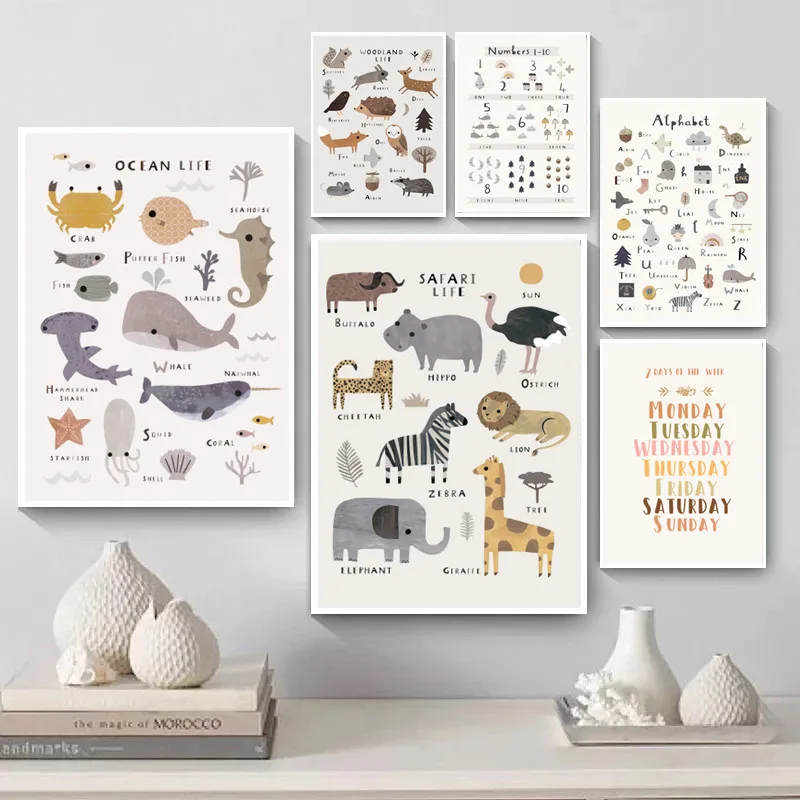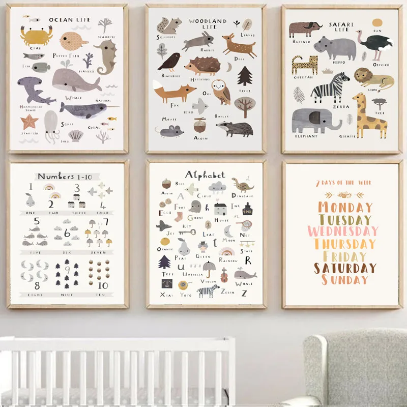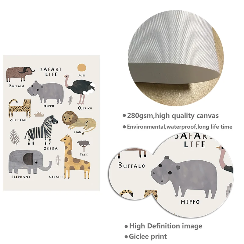 Новая Настенная картина в скандинавском стиле для детской комнаты с милыми мультяшными животными, украшение на холсте, настенные картины для гостиной, домашний декор