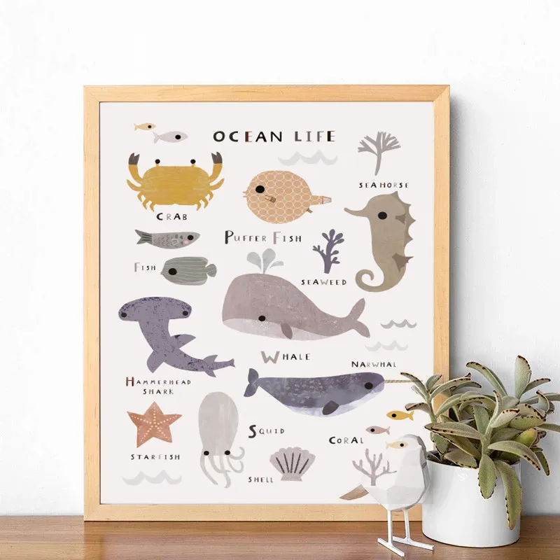 Nordic плакат стены искусства песка падения камыш гриб птицы спокой...