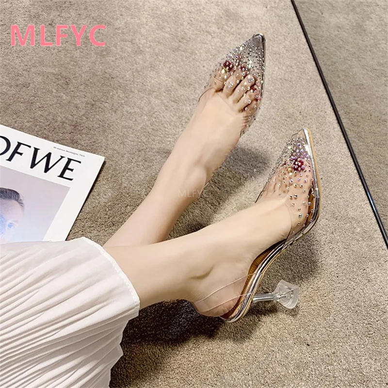 Женские прозрачные шлепанцы на толстом каблуке, босоножки и тапочки...
