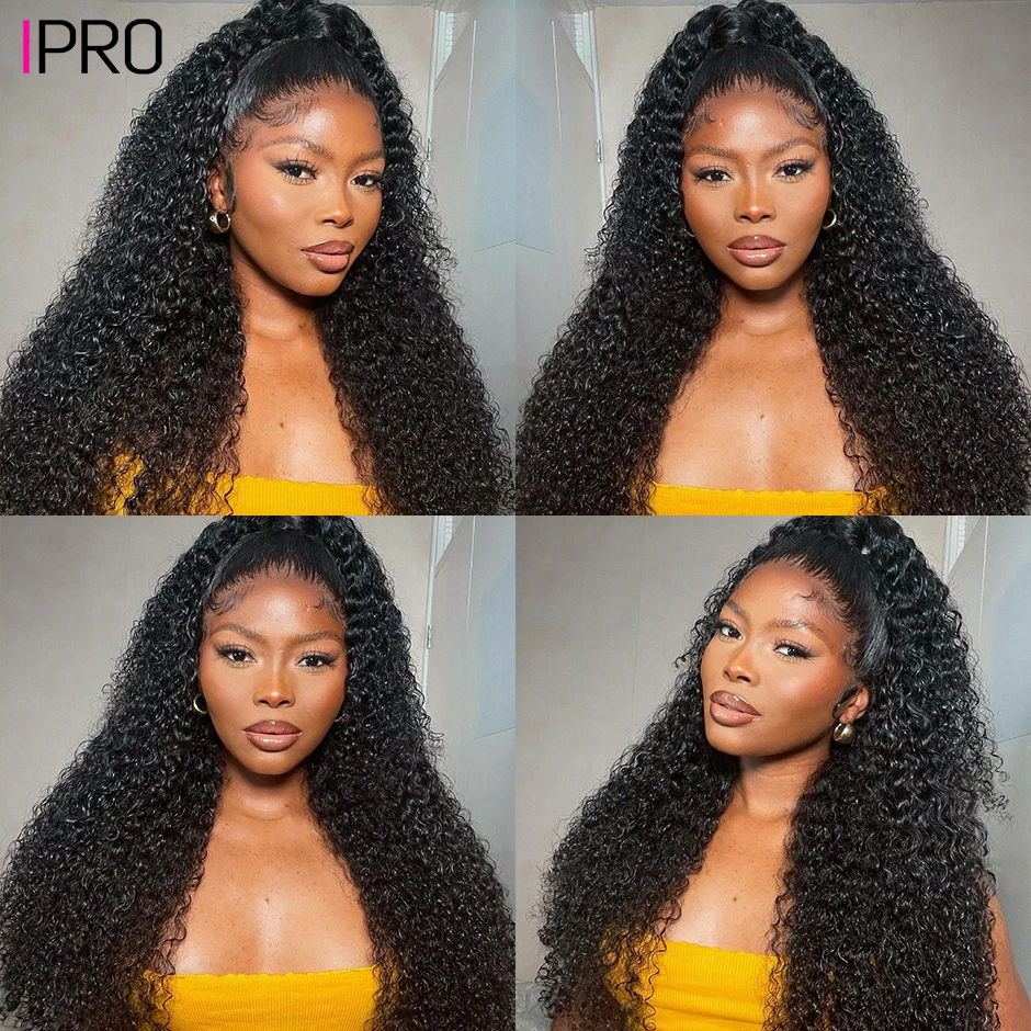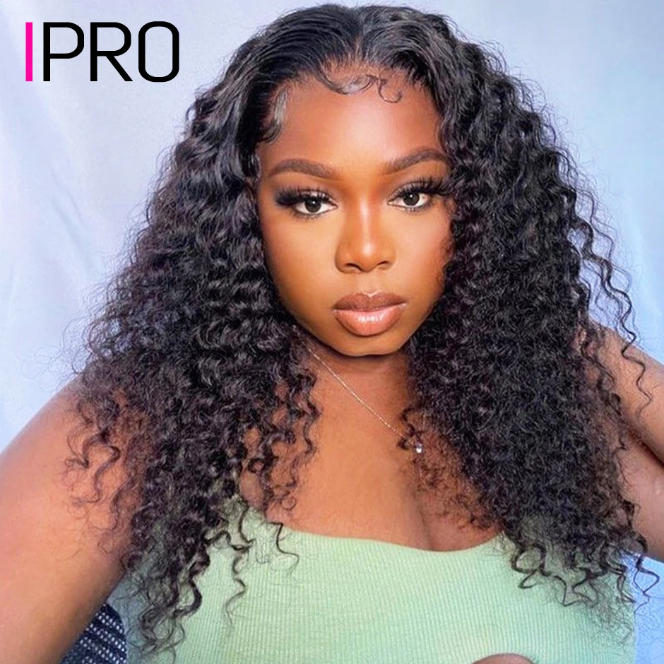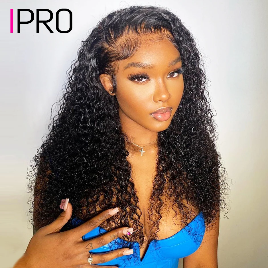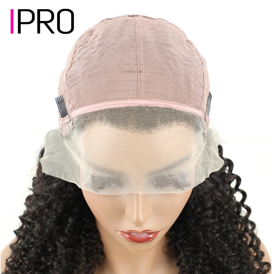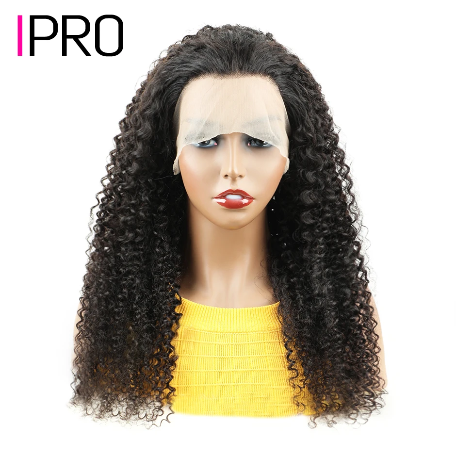 Парик IPRO из натуральных вьющихся человеческих волос, 13 х1 дюймов, парик на сетке, парик полностью изготовленный машиной для женщин, 180% прозрачный парик на сетке