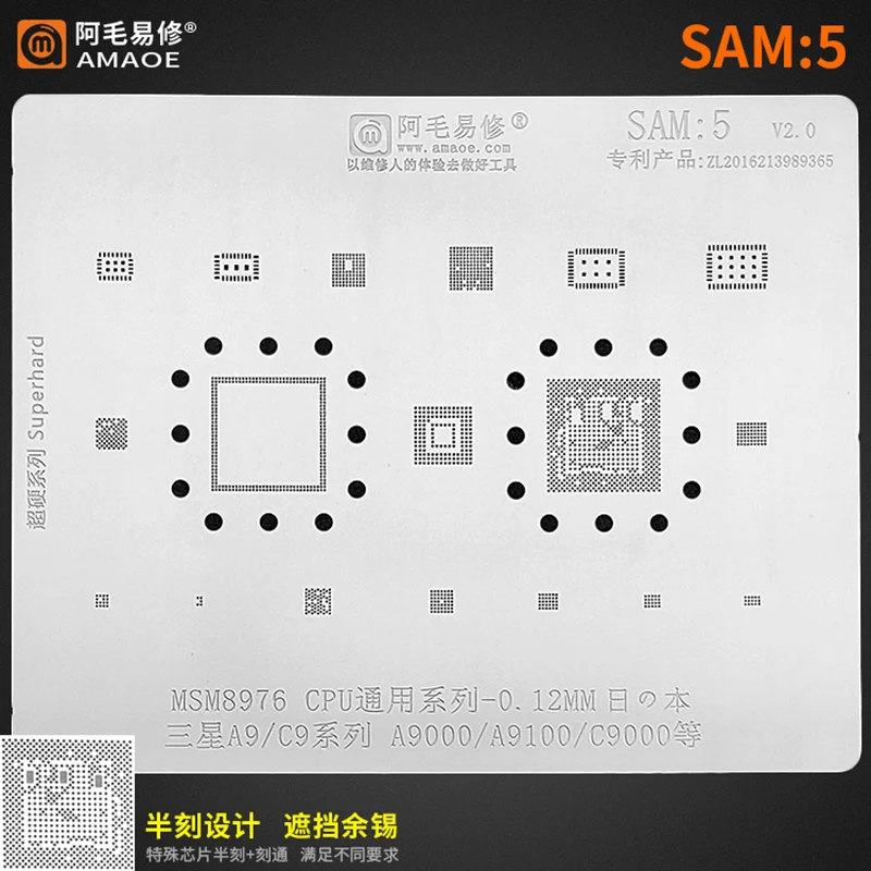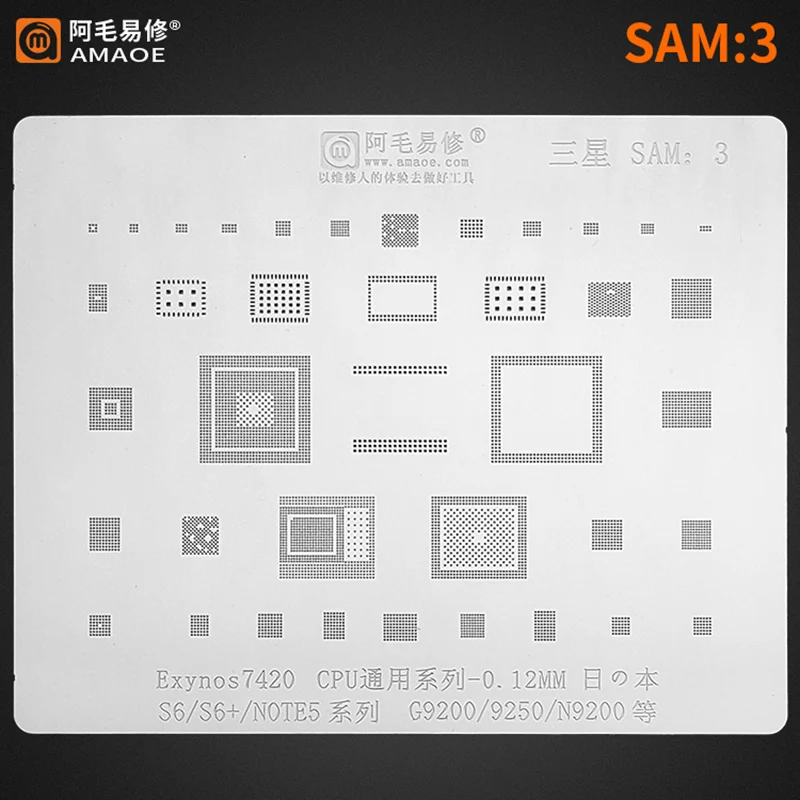 Трафарет Amaoe SAM 1-15 для реболлинга BGA SAM13 SAM14 для Samsung A70 A80 A90 NOTE Exynos7870 9611 Power IC Audio ЦП Оловянная стальная сетка