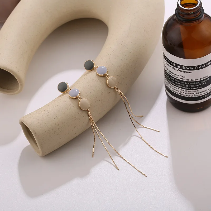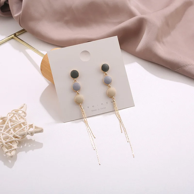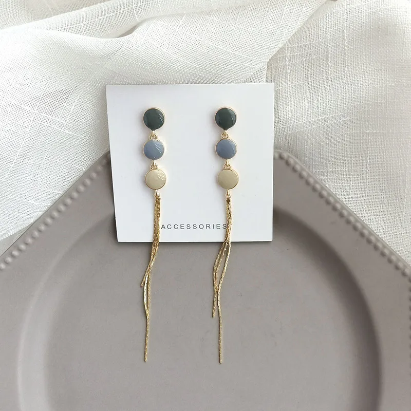 Серьги-клипсы женские в стиле ретро с эмалью и длинными кисточками, не проколотые серьги золотого цвета с геометрической цепочкой, Длинные клипсы без пирсинга
