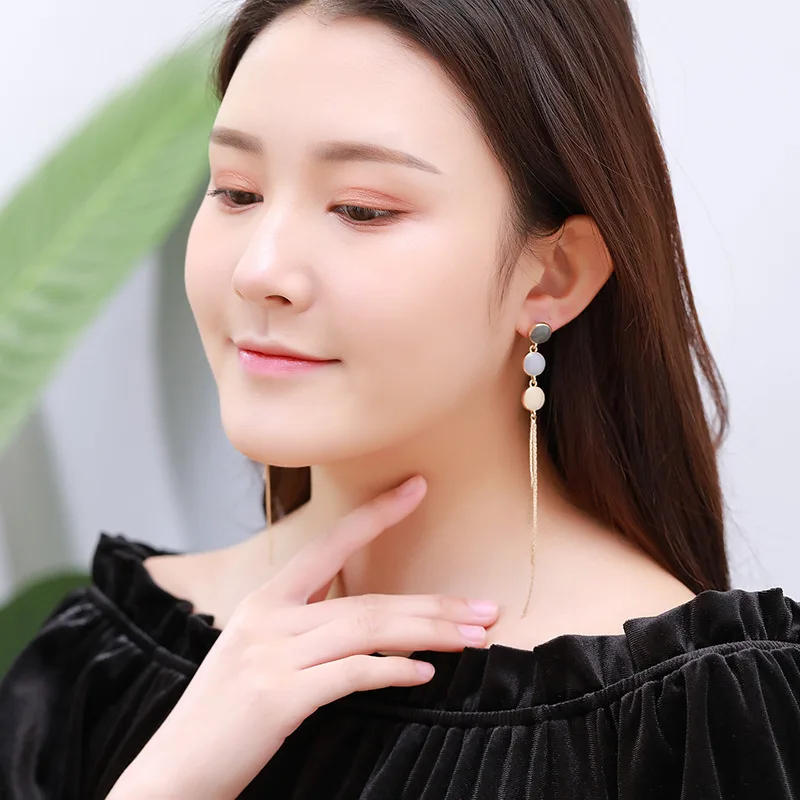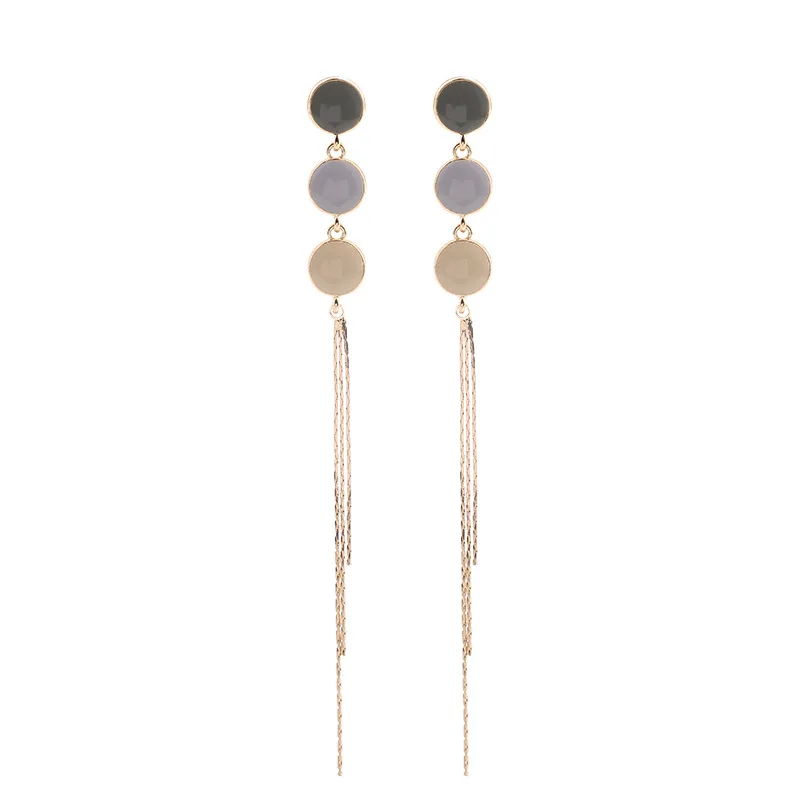Ретро Эмаль круглые длинные серьги-клипсы с кисточками для женщин без пирсинга золотой цвет Геометрическая цепочка длинные Клипсы Серьги без пирсинга