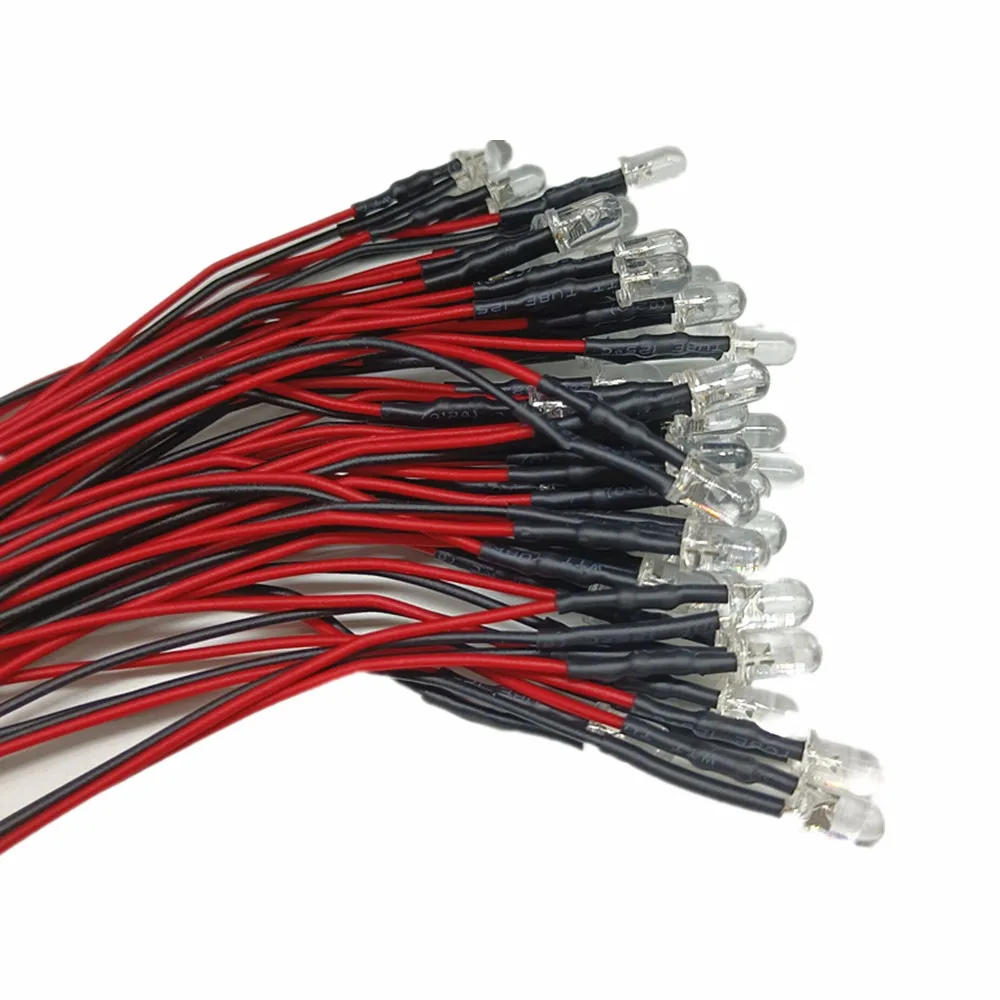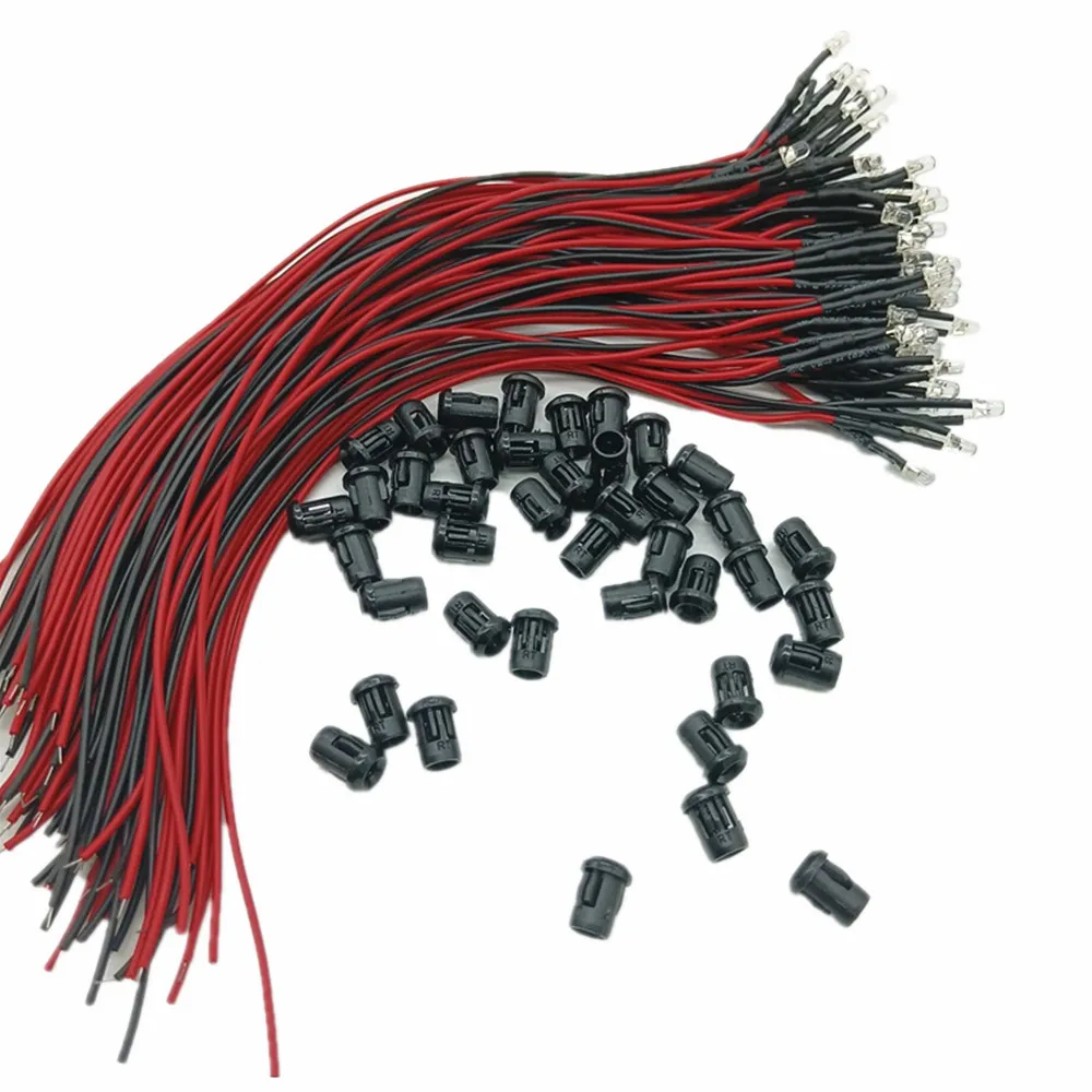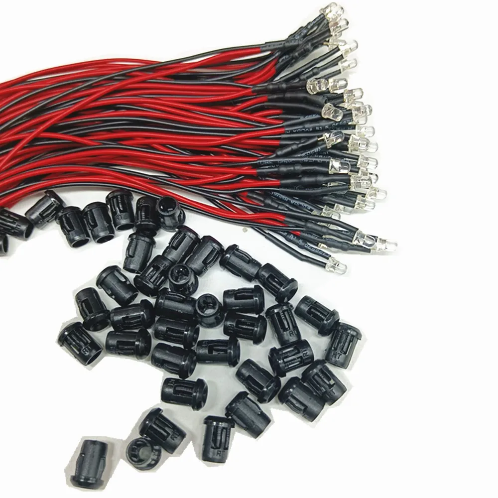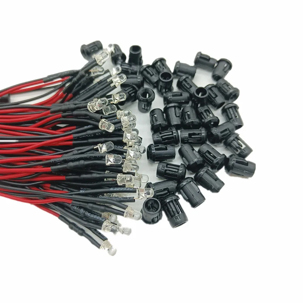50-100 шт. 3 мм5 мм красныйзеленыйсинийRGB Белый УФ постоянный ток 12 В круглый Предварительно проводной прозрачный светодиод с пластиковым держателем
