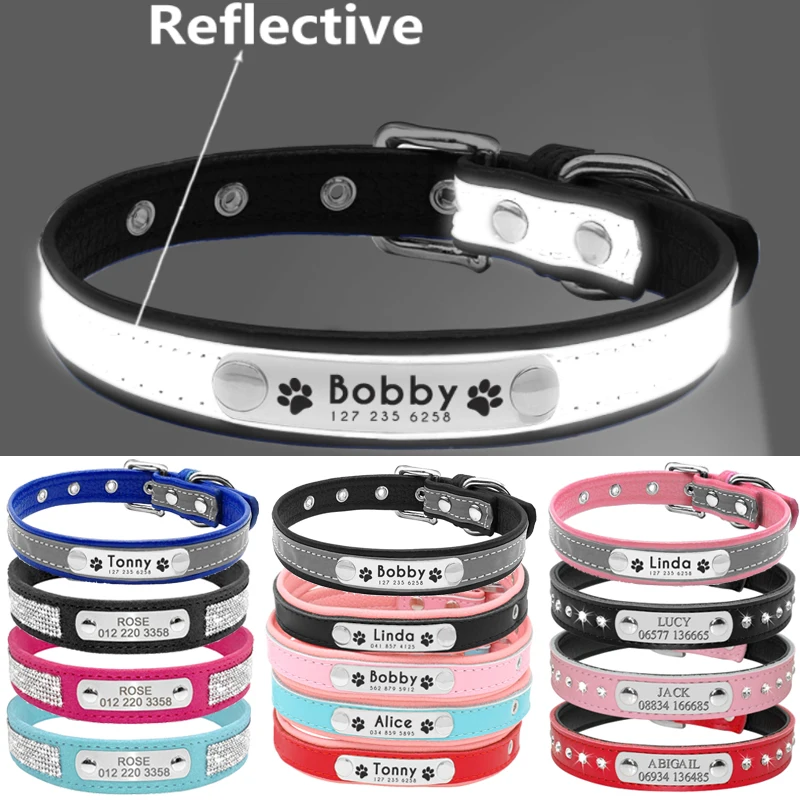 Ошейник для собак и кошек, персонализированный ошейник с выгравированным кристаллом для щенков, для маленьких и средних собак, питбуля, чихуахуа