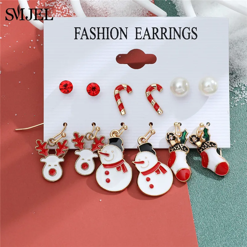 Модные эффектные рождественские серьги в виде снеговика, снежинки, 6 шт.компл., украшения для мужчин и девочек, рождественские подарки