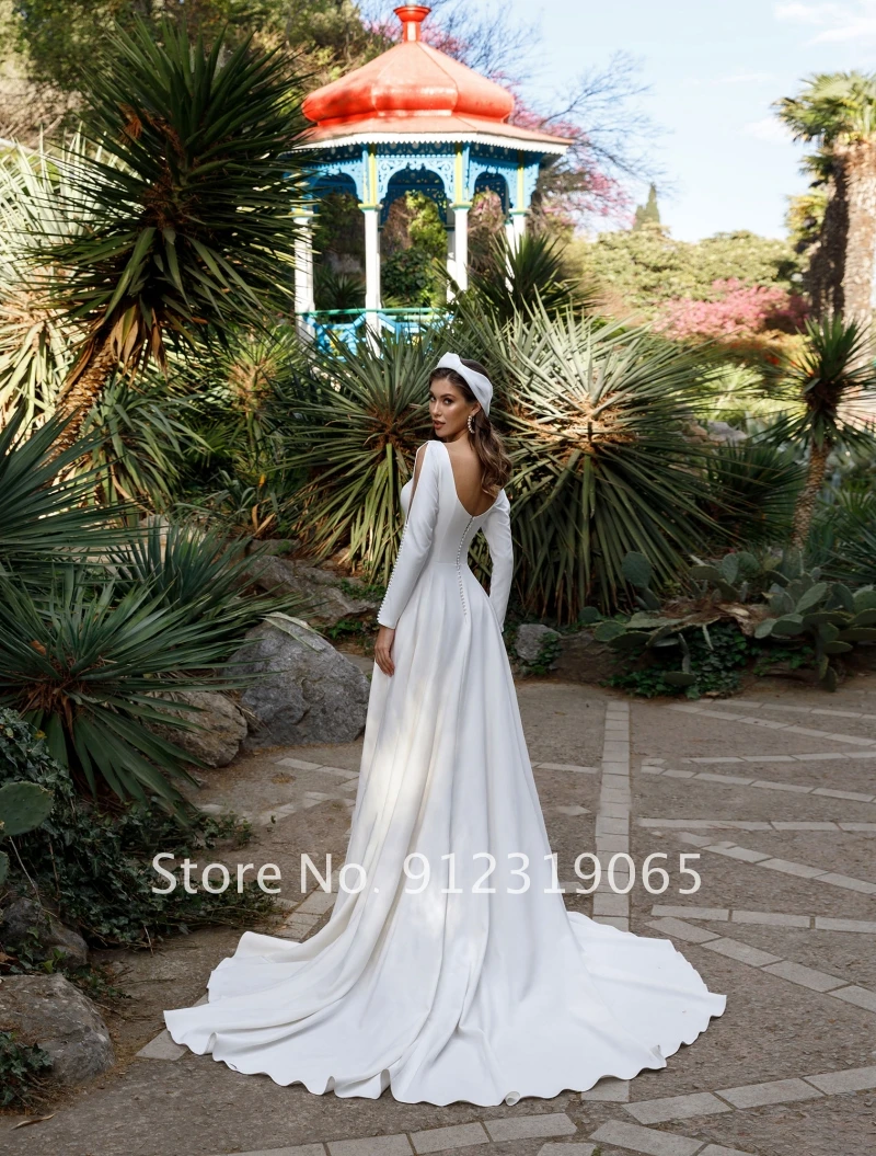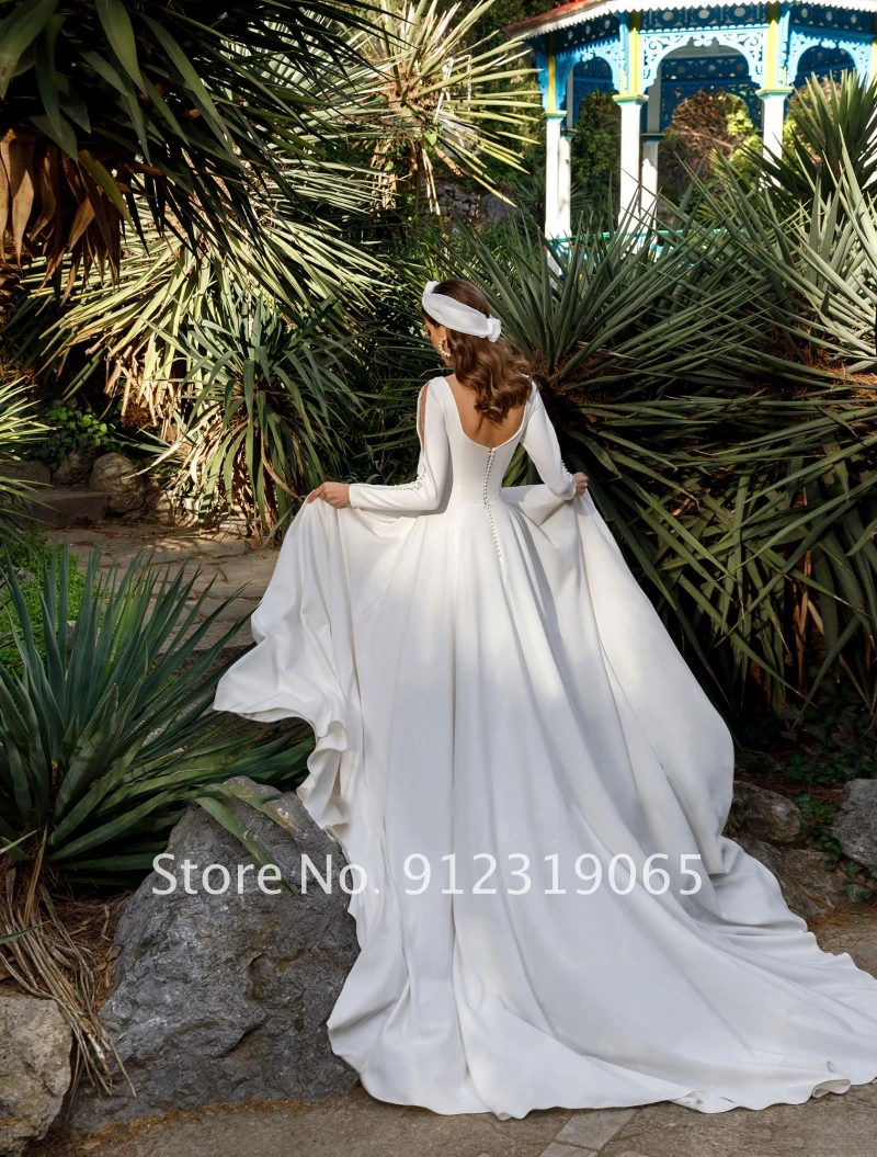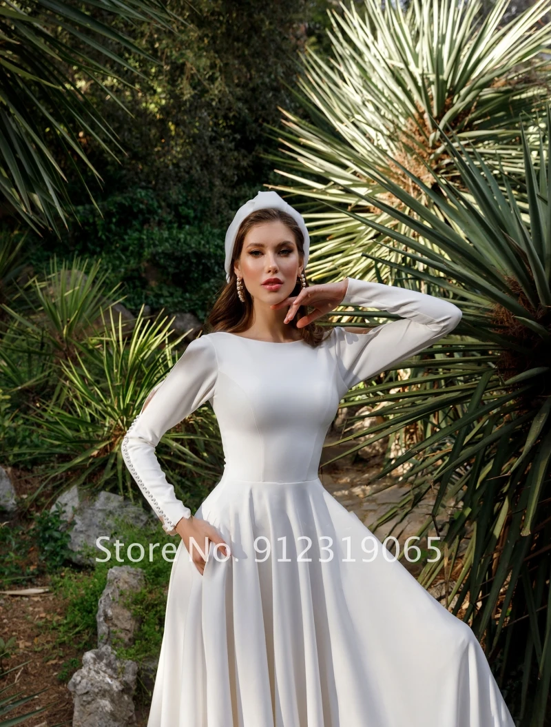 2022 белое арабское мусульманское свадебное платье Принцесса с круглым вырезом с длинными рукавами Кружевные Аппликации Свадебные платья Robe De Mariage
