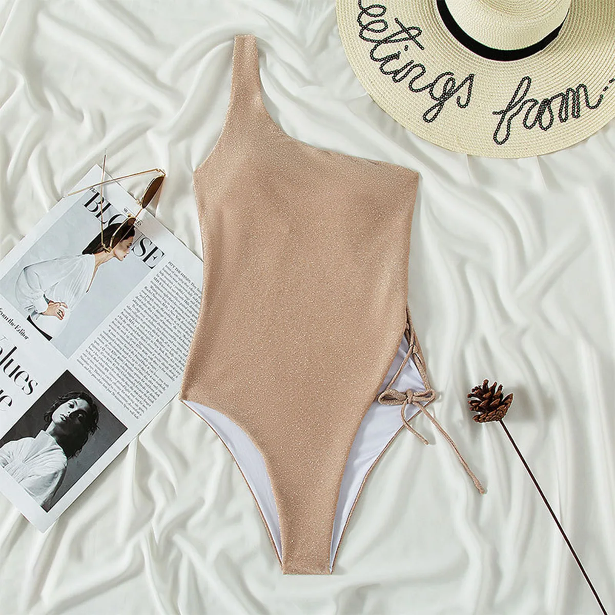 Сексуальный женский цельный купальник 2022, бандажный женский купальник, купальный костюм на одно плечо, монокини, купальный костюм, пляжная одежда