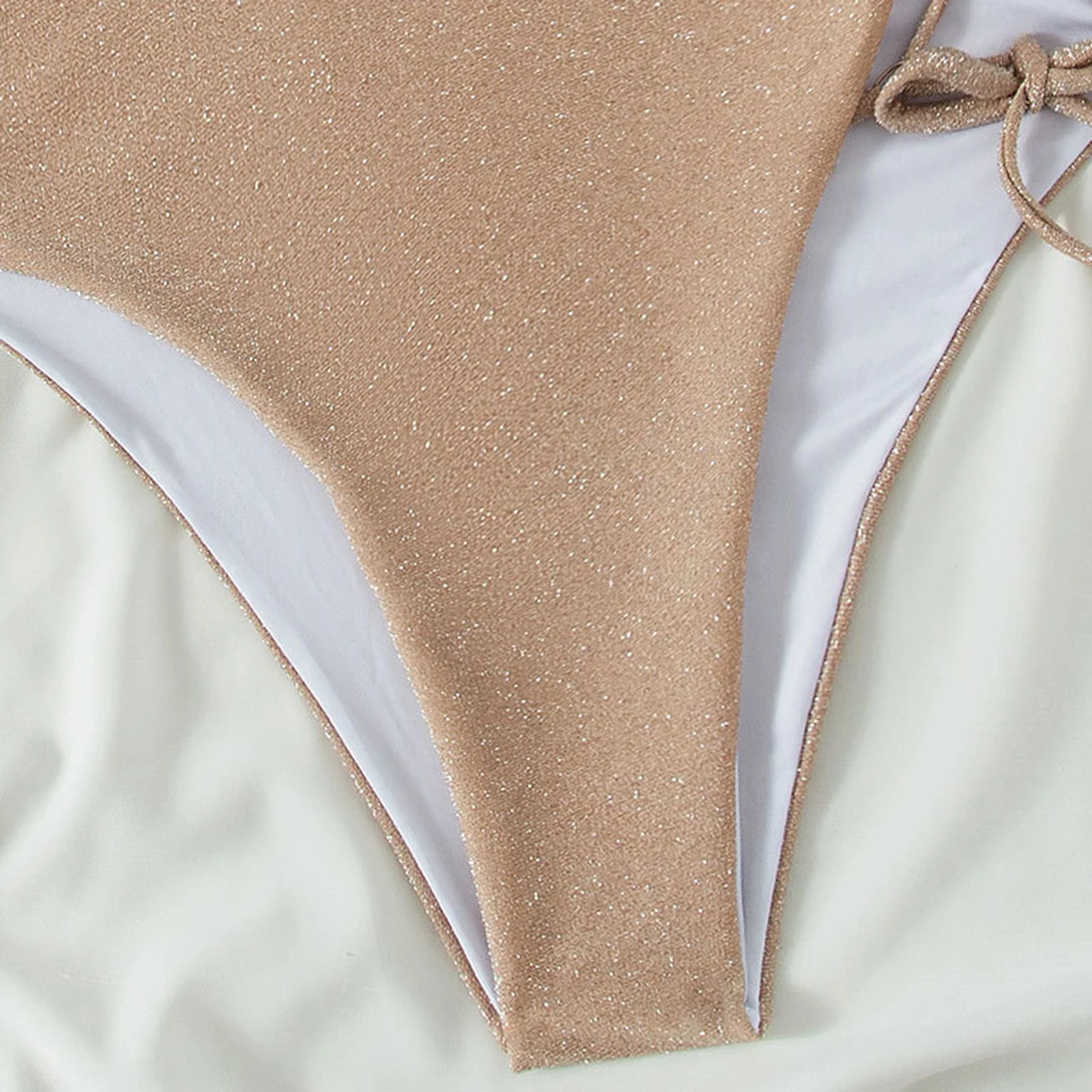 Слитный купальник с вырезами, женский сексуальный однотонный Блестя...