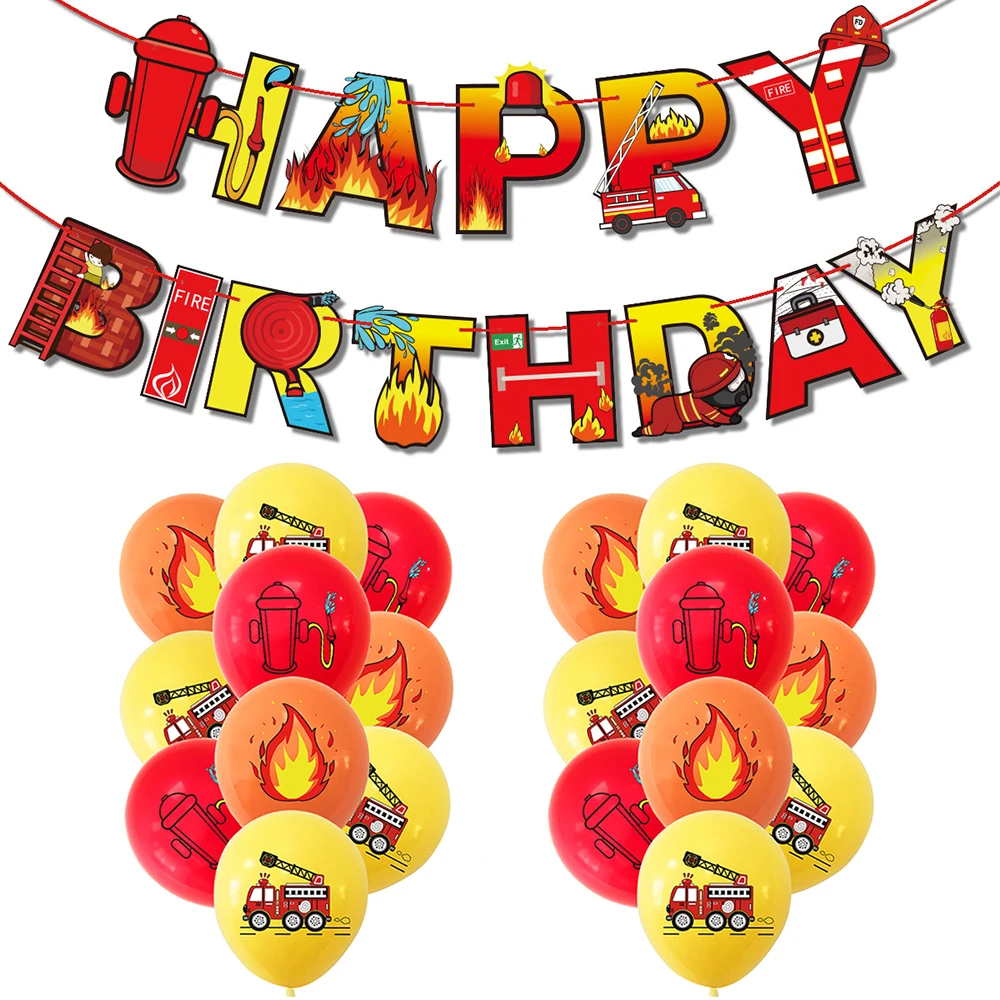 Пожарная машина, латексные воздушные шары для строительства автомобиля, гелиевые шарики, тема пожарного, украшение для детского дня рождения, одноразовая посуда