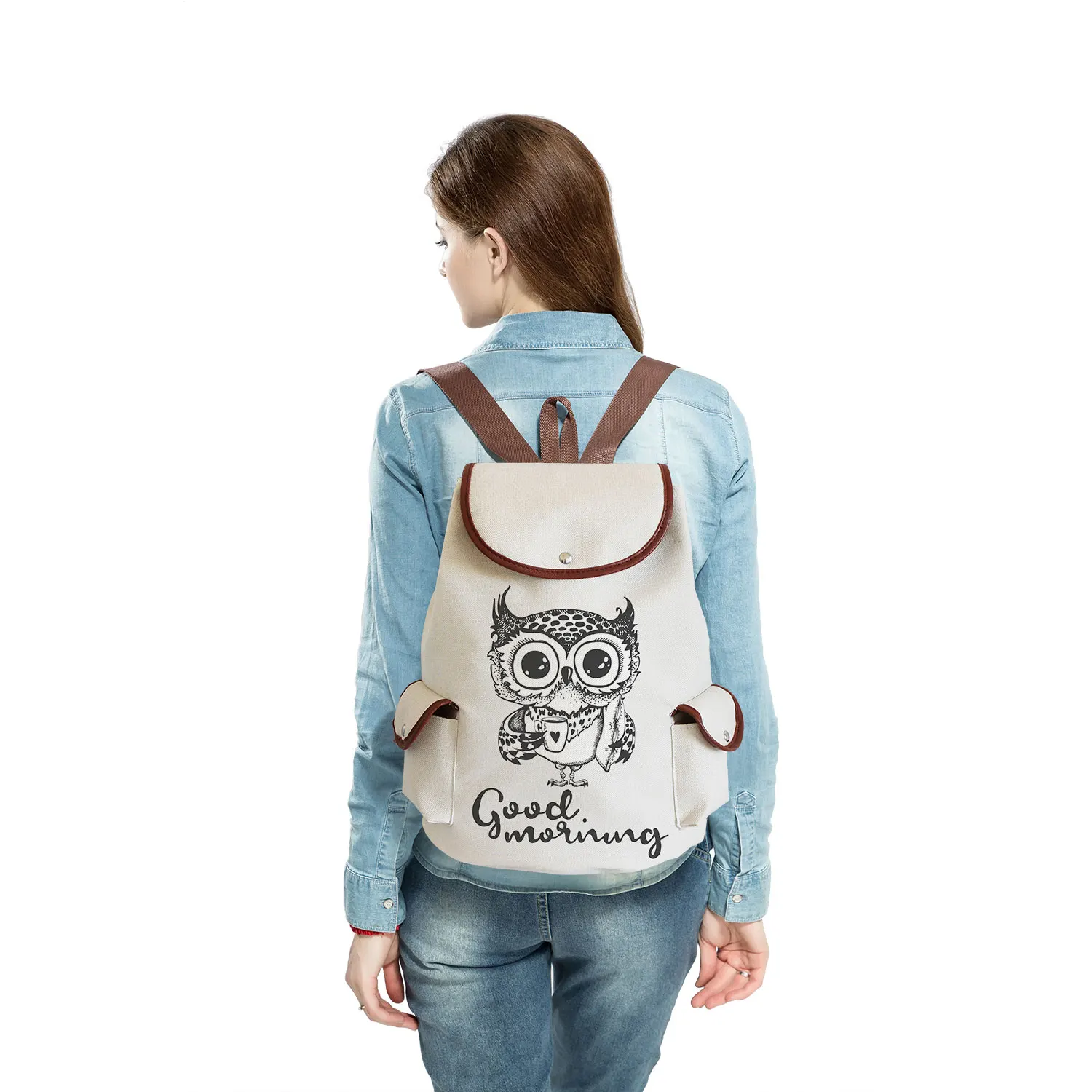 Милый рюкзак с принтом совы, сумки на шнурке для девочек, Женская Повседневная Льняная сумка для книг с мультяшным рисунком для подростков, унисекс, сумка для книг с индивидуальным рисунком