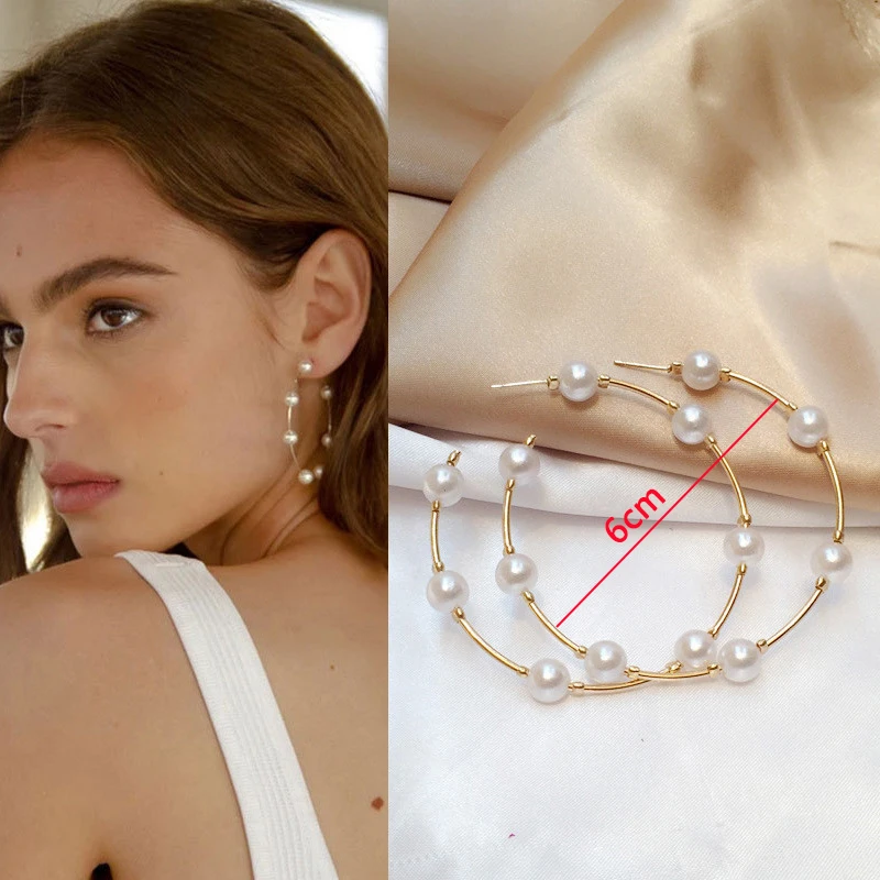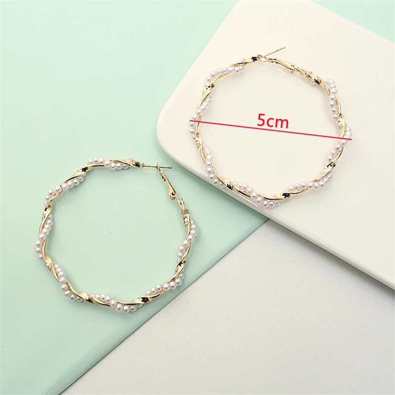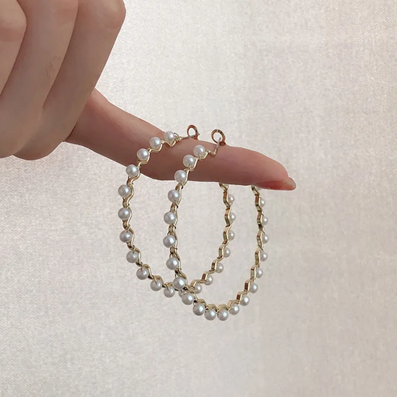 Новинка женские серьги-кольца с жемчугом золотого цвета металлические серьги-кольца для девочек темпераментные женские серьги с имитацией жемчуга