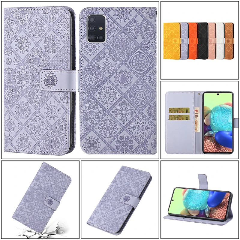 Кожаный флип-чехол с национальным узором для Samsung Galaxy A12 A72 A71 A70 A53 A52 A51 A50 A42 A41 A32 A31 A30 A22 A21 A20 A13 A03 S A01, чехол-кошелек с отделением для карт