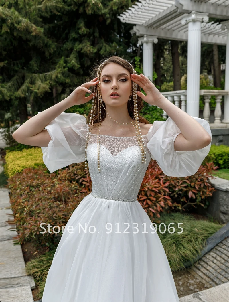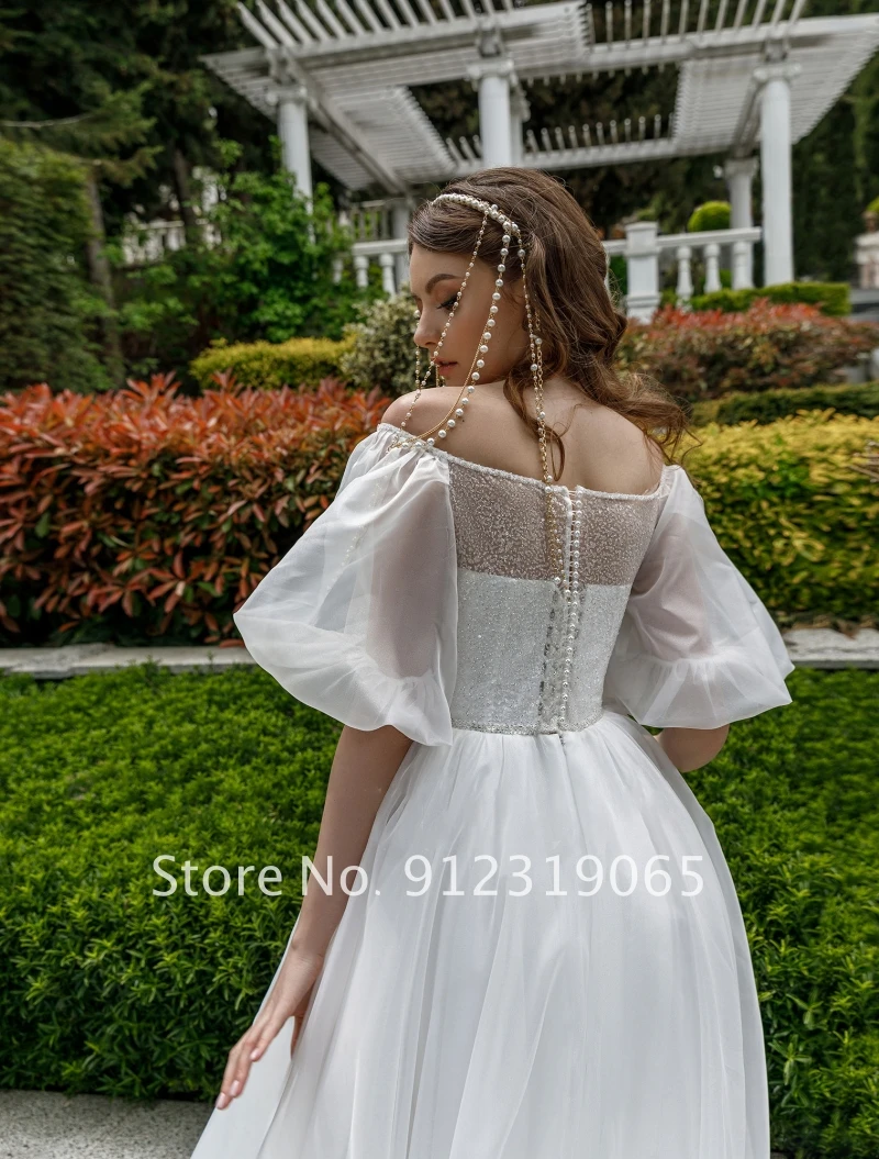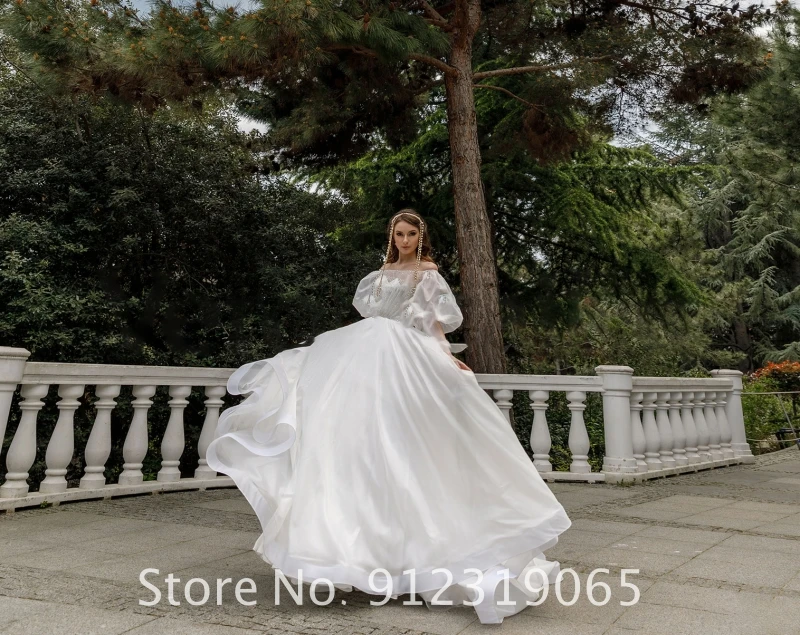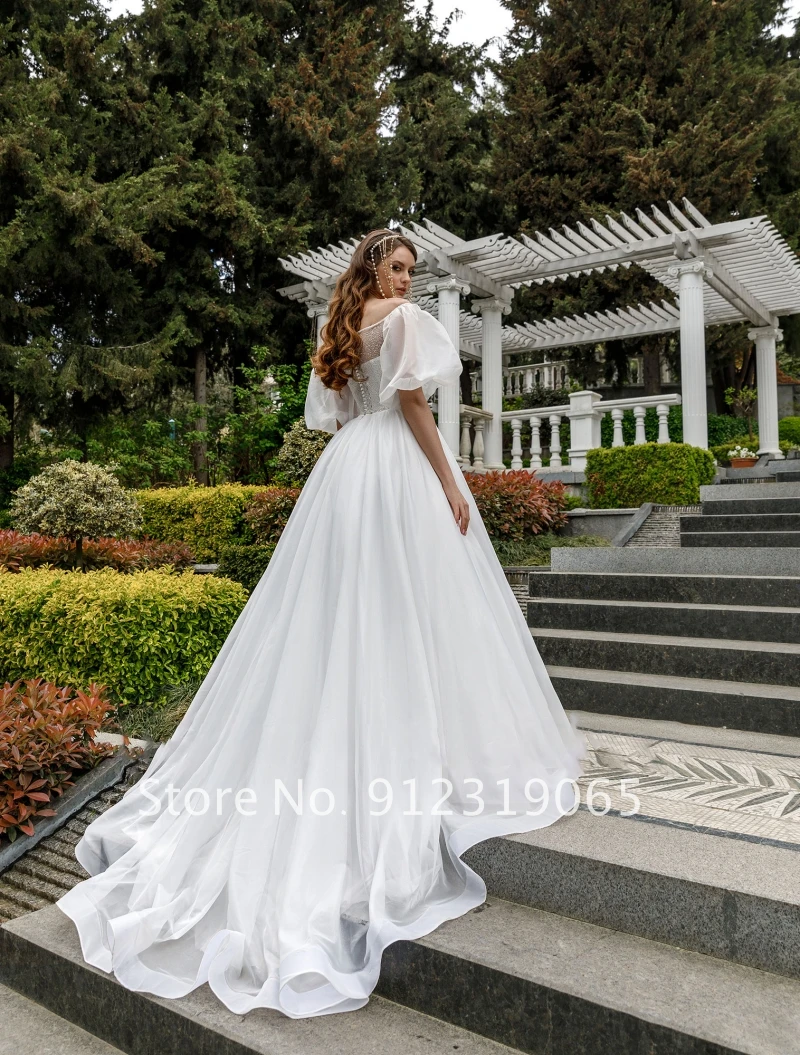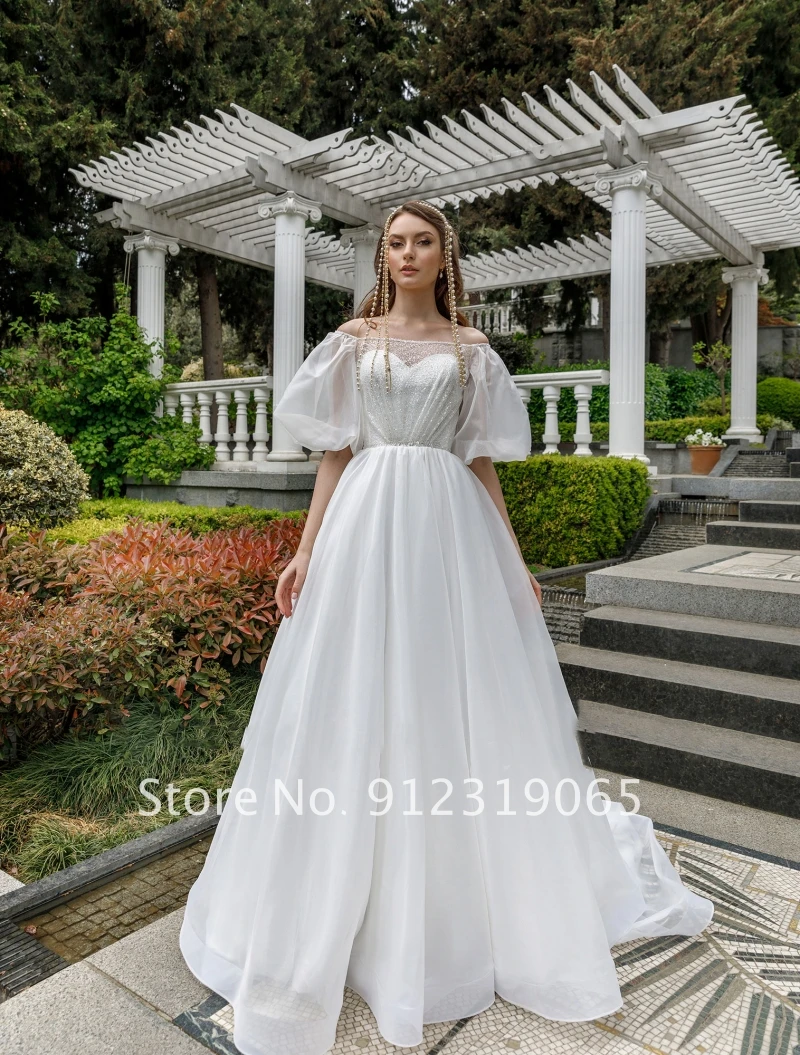 Кружевное Тюлевое свадебное платье-трапеция с открытыми плечами, вырезом лодочкой и короткими рукавами, свадебные Платья, свадебное платье, пошив на заказ 2022