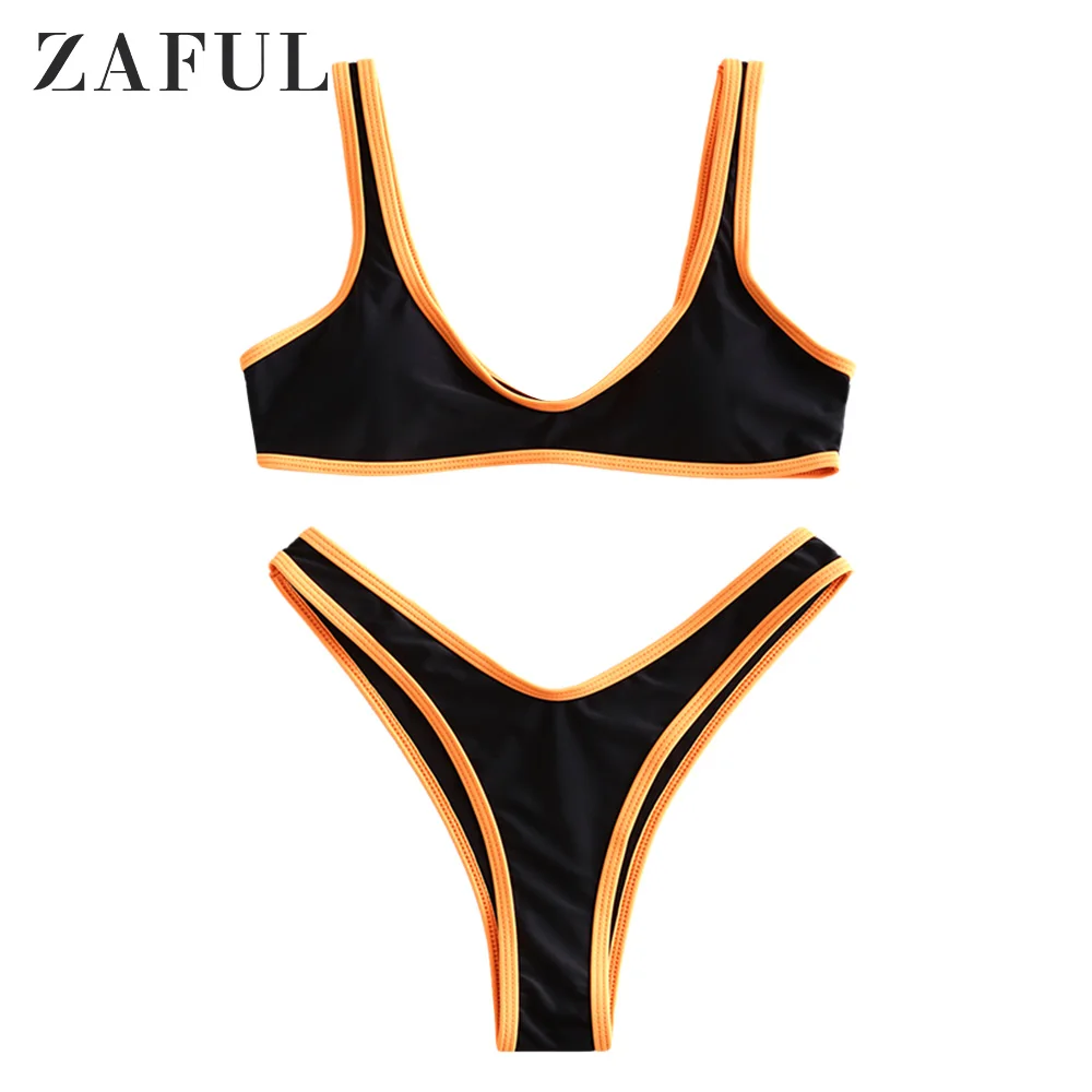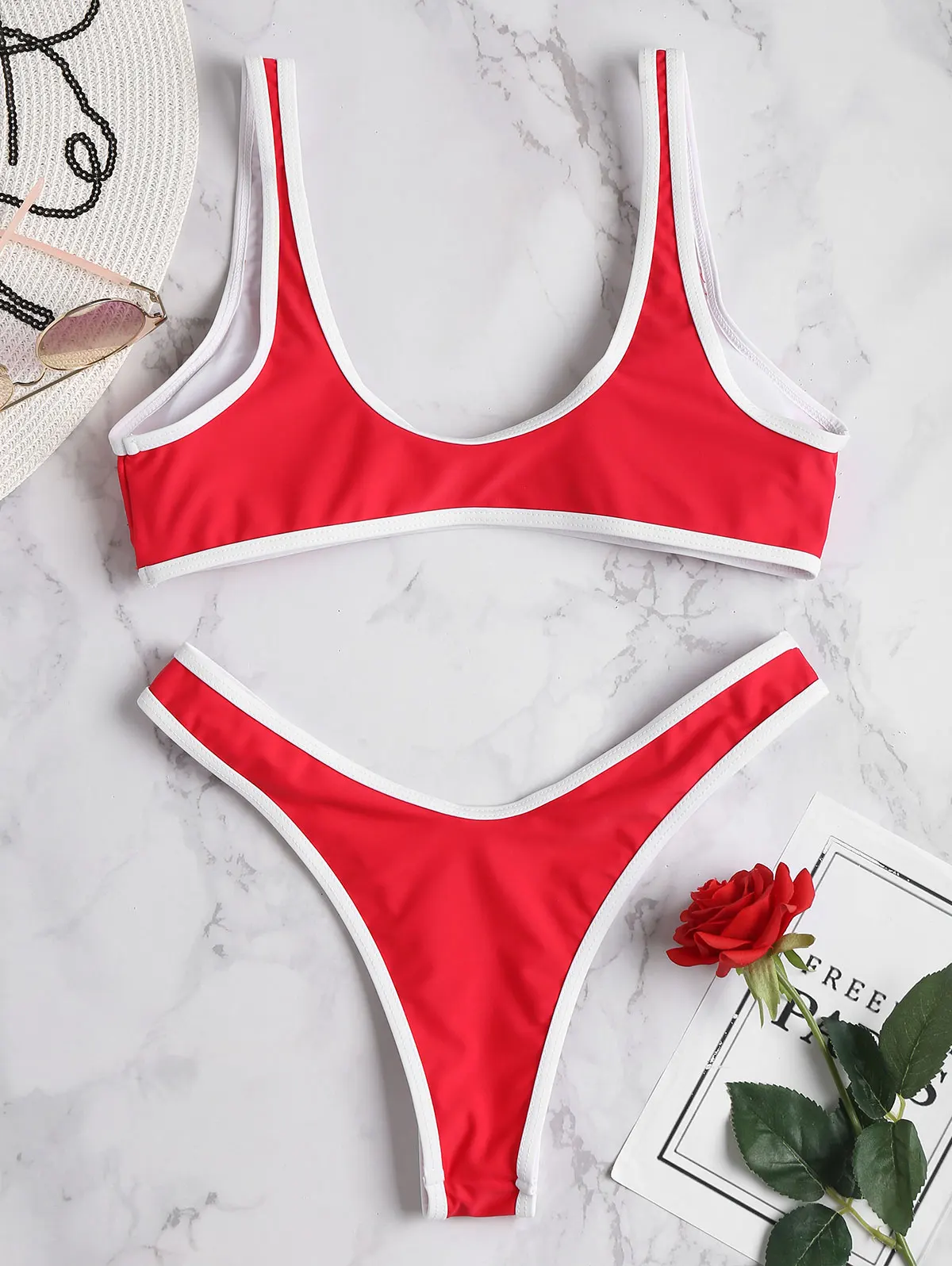 Компл. Бикини с контрастной отделкой, с высоким вырезом