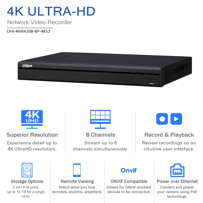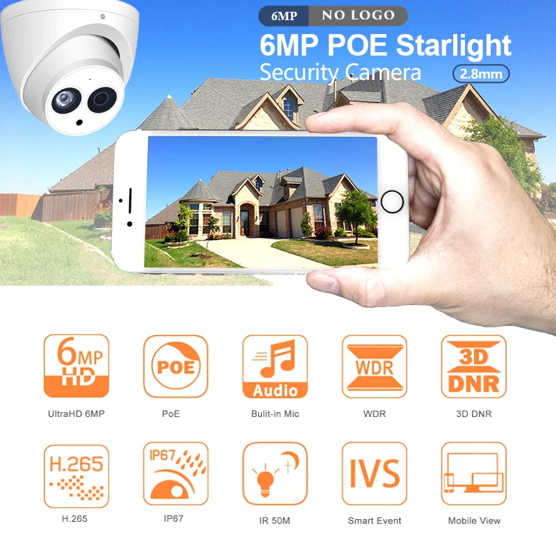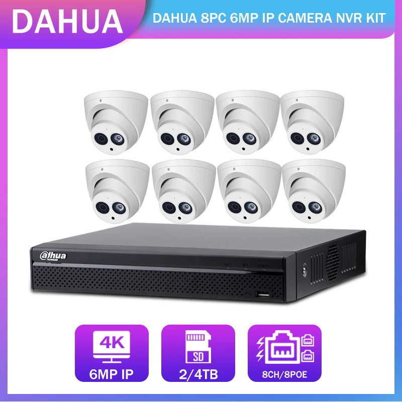 Наружная система видеонаблюдения Dahua, 8 каналов, фотокамера, 6 МП, PoE, встроенный микрофон, комплект видеонаблюдения IP