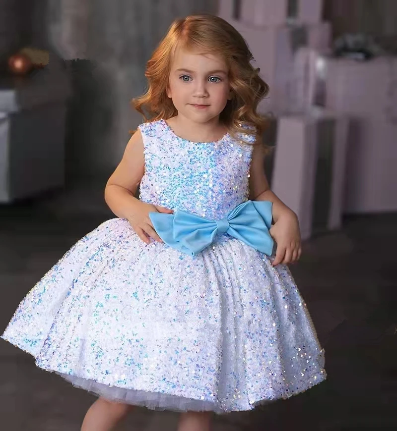 Белое Пышное Платье для девочек, блестящее платье принцессы без рукавов на день рождения для детей, пышные платья для девочек для вечерние ринки и свадьбы